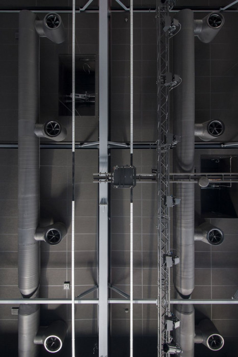 První je otevřený, rušný, plný života a pohybu. Červená podlaha v kontrastu s bílým lesklým pláštěm a průmyslovými ocelovými nosníky tvoří výrazný a na první pohled snadno zapamatovatelný obraz.