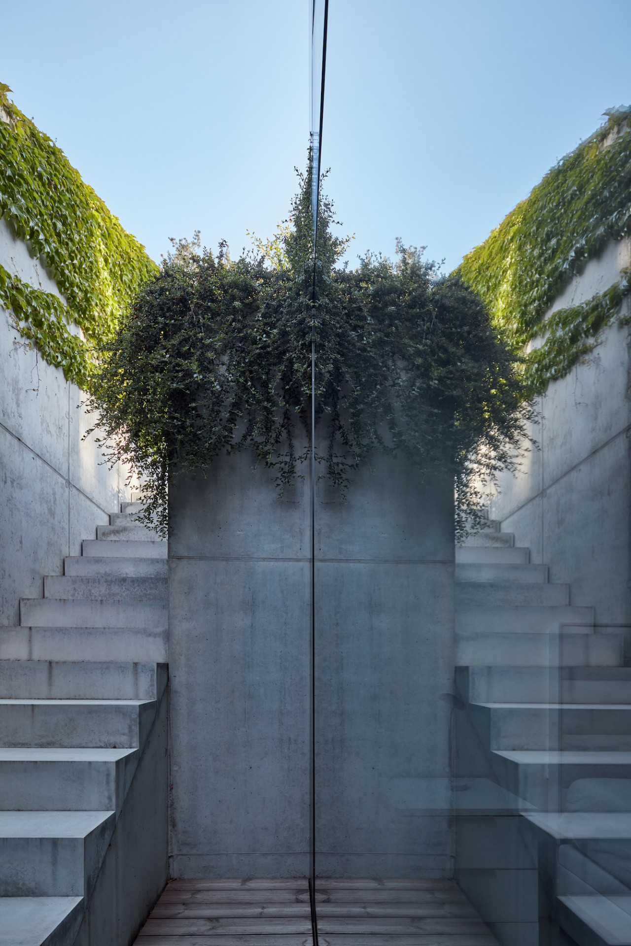 Dům má do nábřeží tři nadzemní podlaží, do svahu podlaží jedno. Severní část domu, která je orientovaná do nábřeží, je zkosená a tvoří šikmou střechu navazující na střechy sousedních domů. Zbývající část vrchní hmoty pokračuje střechou plochou. Střecha je po celé své ploše zelená a opticky přechází do stoupající zahrady. Do zelené plochy střechy jsou vyříznuté dva asymetricky umístěné okenní otvory dětských pokojů a obytného prostoru.