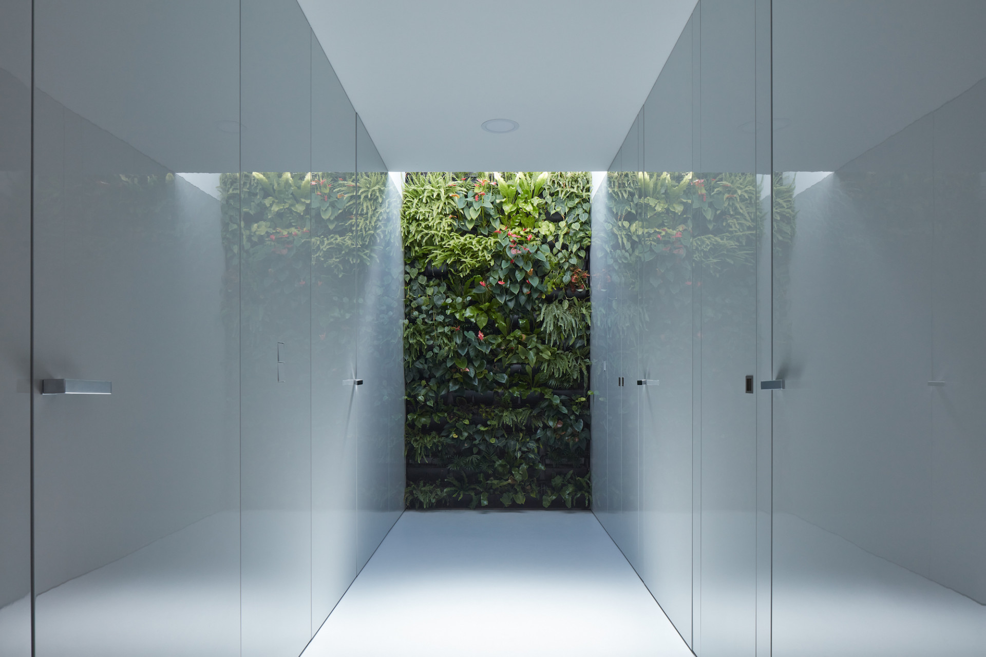 Nosné konstrukce domu jsou ze železobetonu a oceli. Fasádní obklady jsou z hliníkových černých plechů. Okna v celém domě jsou z hliníkových rámů, boční stěna vnitřního schodiště je složená z mléčného profilového skla. Skladby zelené střechy je složená z několika vrstev drenážních, filtračních a ochranných fólií.