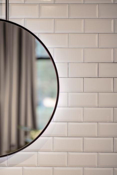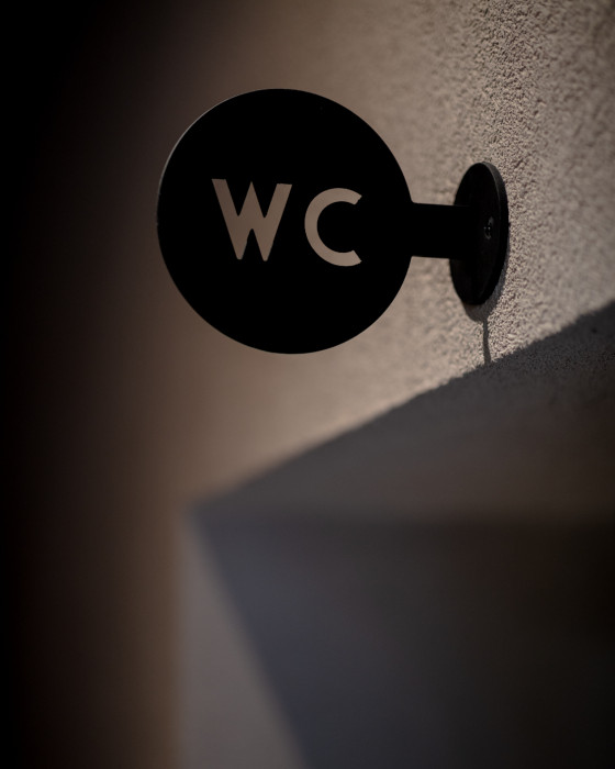 Osou dispozície prechádza chodba, ktorá delí prevádzku na štyri základné celky, ktoré majú každý svoju vizuálnu a priestorovú charakteristiku podľa ich funkcie. Obchodík s výkladom je kompaktný biely box, navodzujúci lekárenský charakter, kde však namiesto liekov dostanete kúpiť Gin a Likér vyrobený priamo v objekte s prímesou mnohých liečivých bylinek. Predsieň toaliet je v tmavozelenej farbe, toalety sú šedé. Ostatné technické priestory, sklady či kotolňa sú v bielom obklade. Keramický obklad či dlažba je spoločným charakteristickým prvkom, ktorý sa objavuje v každej z miestností.