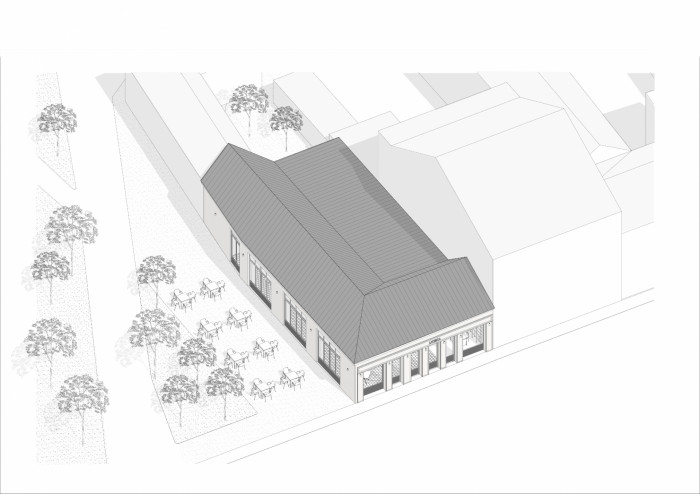 Klienti nás oslovili s ideou premeniť tento dom na výrobňu likérku, kaviareň a malý obchodík. Od začiatku sme uvažovali o nutnosti objekt očistiť od nánosov rôznych dôb a prinavrátiť mu genia loci. Na základe historických fotografií sme upravili okenné otvory do pôvodných polôh. Abstrahovali sme pôvodné drevené priečelie objektu smerom do ulice v podobe plastických novotvarov z dreva no zároveň vo farbe omietky. Nesnažili sme sa objekt pamiatkársky reštaurovať ale v jemných odkazoch prerozprávať historickú podstatu do dnešnej doby.