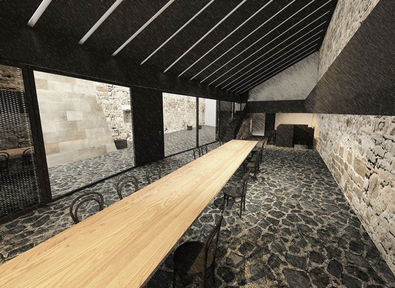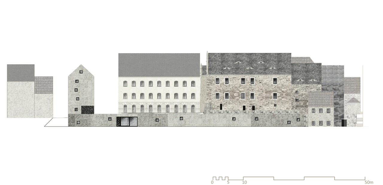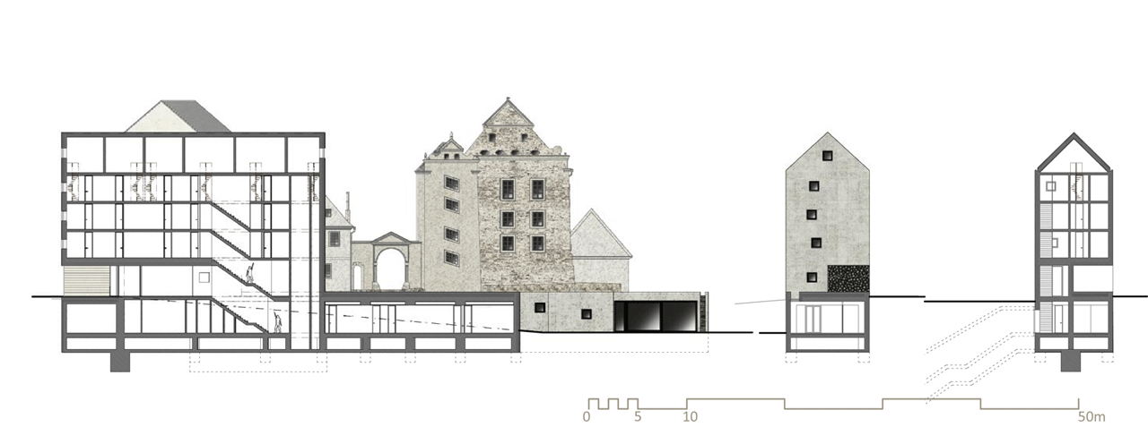 / návrh očišťuje existující historické prvky areálu a umocňuje jejich autentické vyznění / nově vložené elementy jsou jasně odlišitelné v architektonickém ztvárnění
