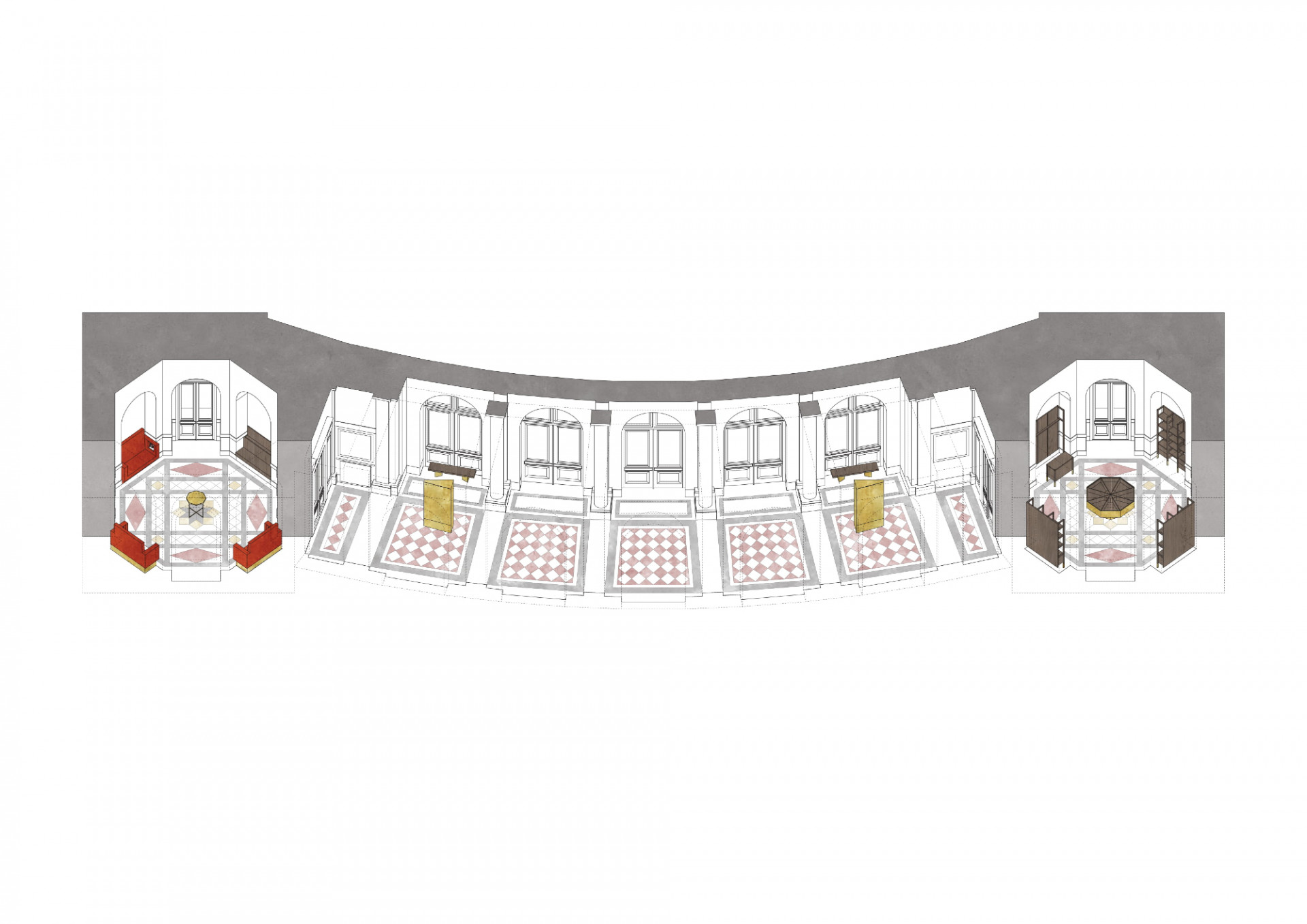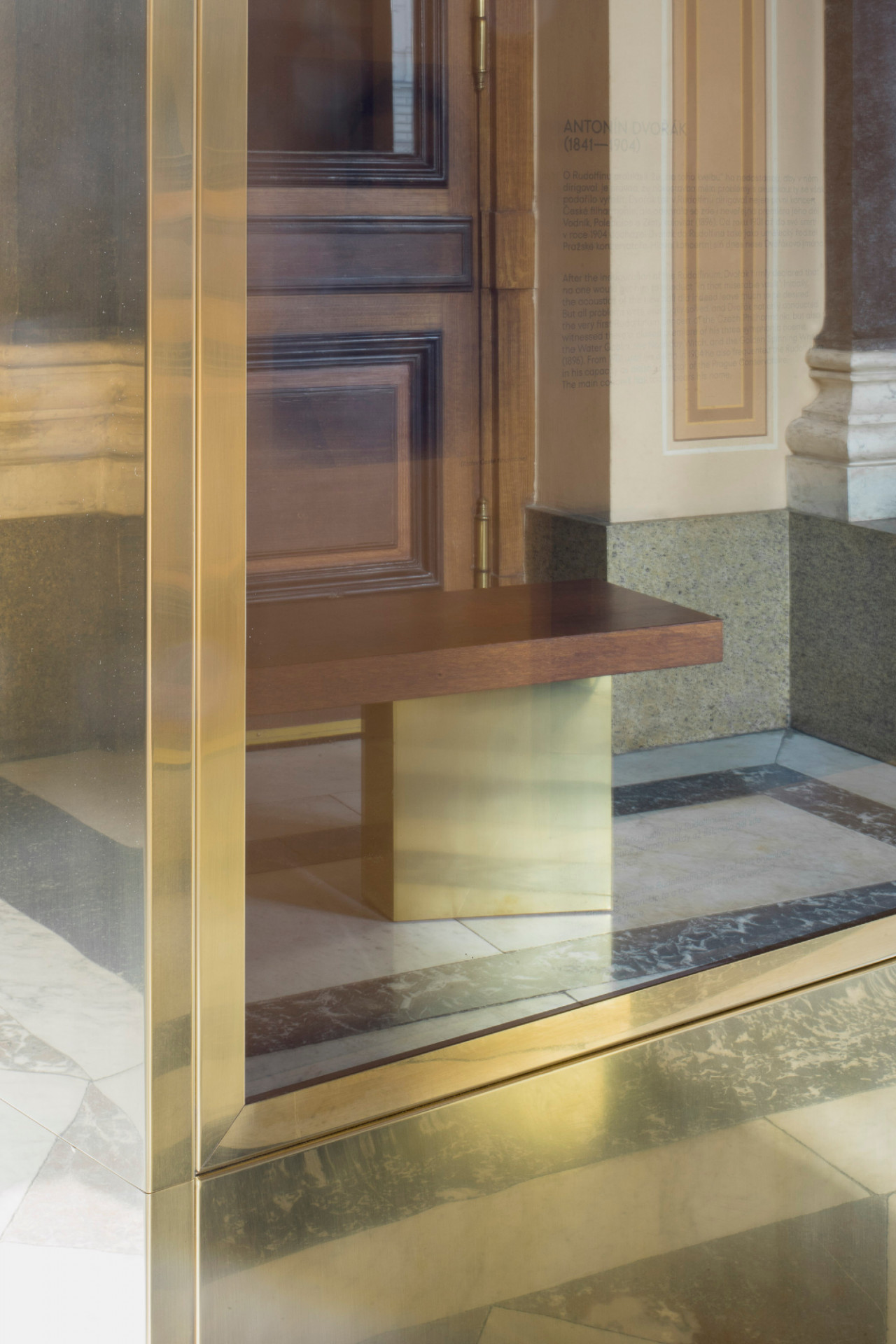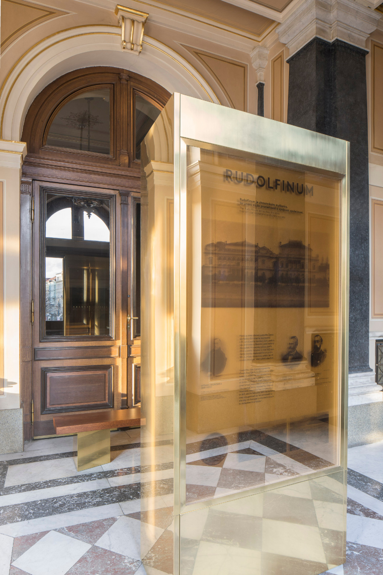 Náš návrh pro interiéry předsálí Dvořákovy síně v Rudolfinu vznikal s respektem k původní architektuře budovy i k nadčasové hodnotě a důstojnosti České filharmonie. Záměrem bylo historický prostor vizuálně nepřebíjet a spíše akcentovat, a přitom doplnit o nové využití uceleně, funkčně a současně. K tomu jsme si pomohli jednak efektem zrcadlení a použitím materiálů, které se už v budově vyskytují, pak také tvarováním včetně návaznosti na půdorys a ornamenty na podlaze. Projekt navazoval na výhru ve vyzvané soutěži v roce 2019 pořádanou organizací Czechdesign. Zadání od České filharmonie požadovalo předělat obchod se suvenýry, doplnit možnost poslechu hudby a výstavu o historii budovy. Inspirací k návrhu nám byl pokorný přístup jinak avantgardního architekta Karla Pragera při generální rekonstrukci budovy v 90.letech 20.století.