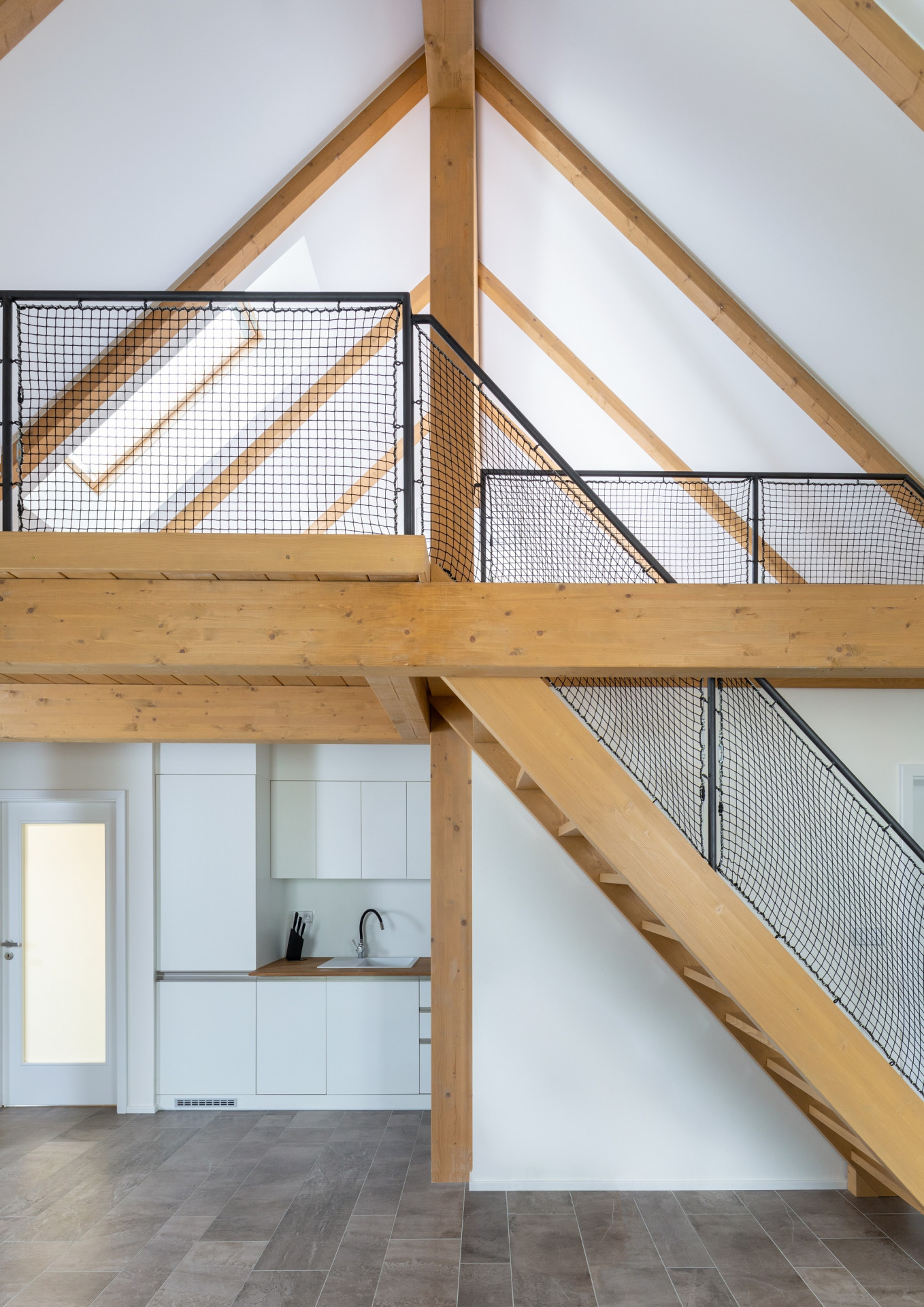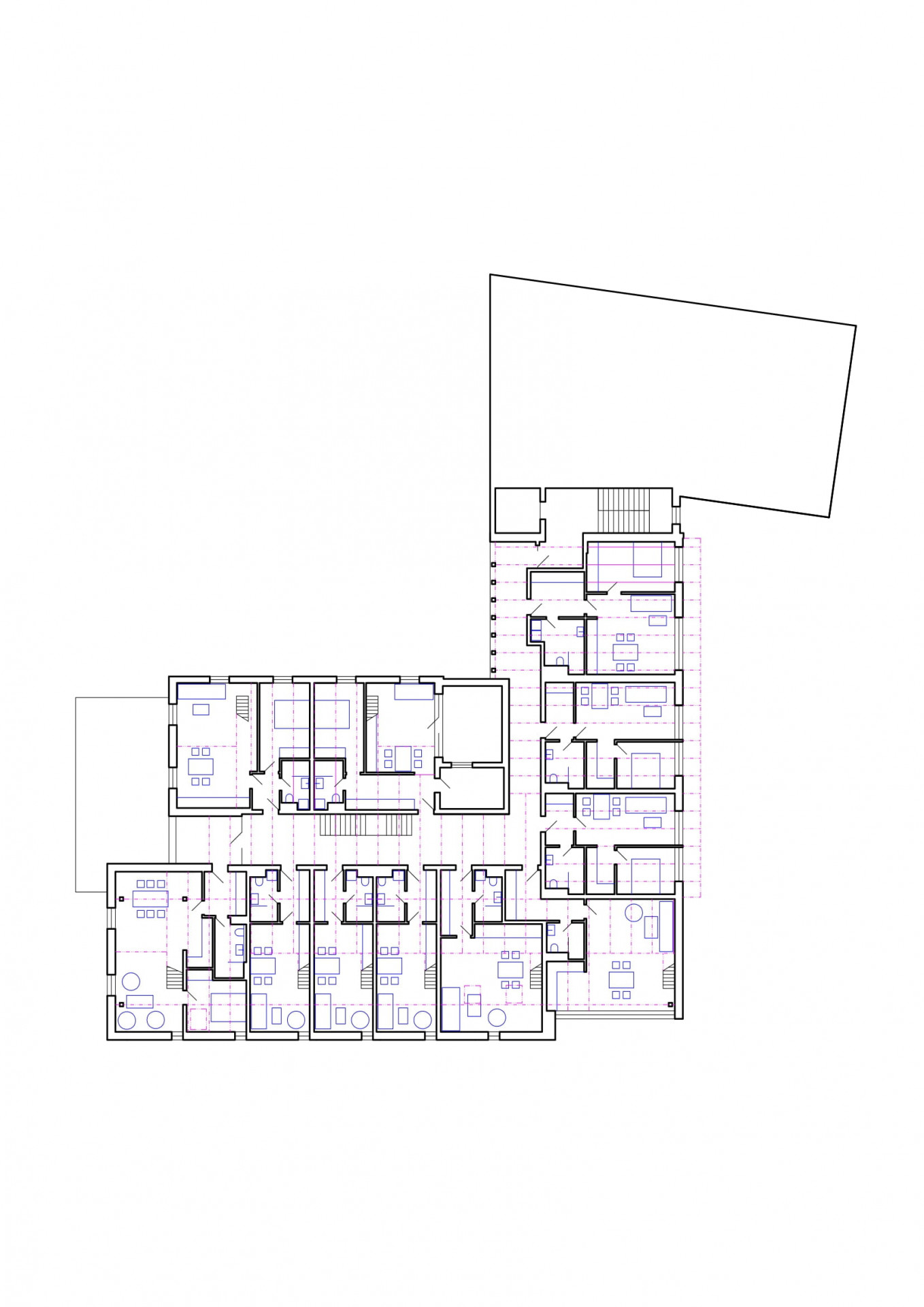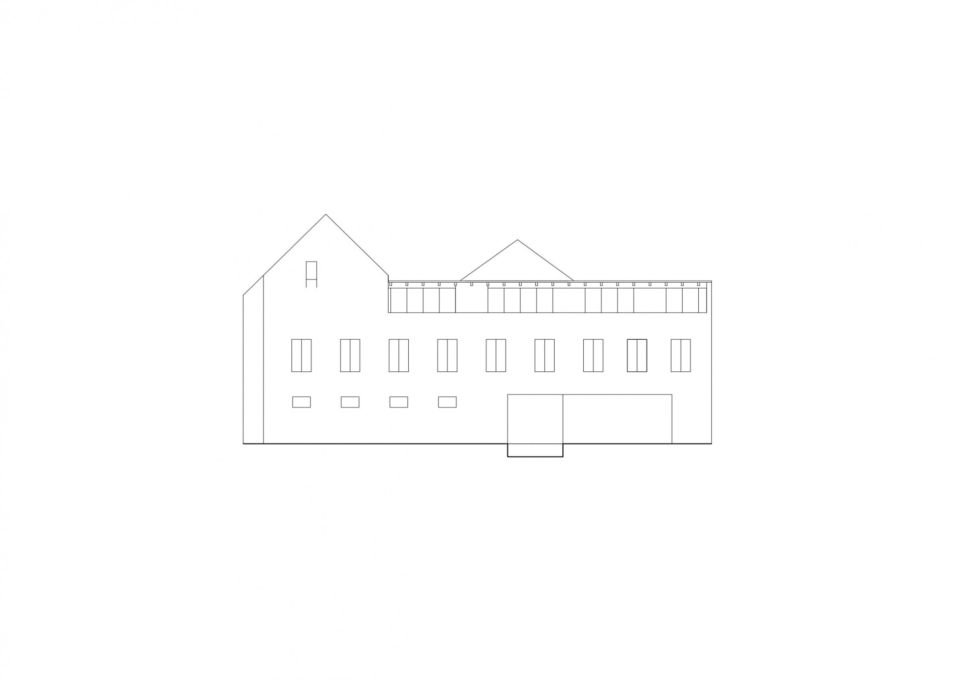 Nadstavbou je objekt formován do archetypálních tvarů se sedlovou střechou, stavba je rozdělena na uliční objekt a dvorní křídlo. Tím jsme docílili úpravy měřítka budovy a jeho přiblížení okolním stavbám. Použili jsme klasické materiály jako hladká či vzorovaná omítka a pálená krytina. Ze strany zásobovacího dvora má podkrovní nadstavba soudobý výraz. Parkování je před domem i ve dvoře.