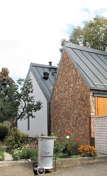 Severní část objektu je řešena jako dřevostavba, jižní část je zděná. Fasáda zděné části je tvořena kamenným zdivem s výrazným rohovým prosklením výstavního prostoru a garážovými vraty do skladu. Fasáda dřevostavby je zčásti omítnuta, zčásti opláštěna titanzinkovým plechem. Stavba je zastřešena dvěma sedlovými střechami. Střešní krytina je z předzvětralého titanzinku.