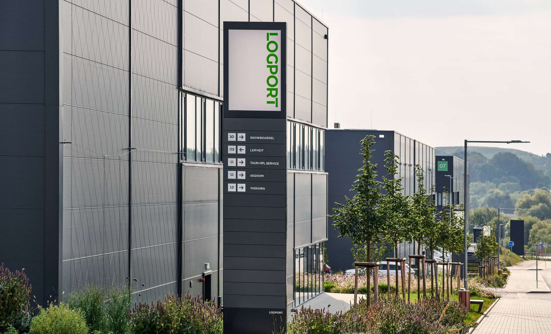 Logport Prague West tvoří sedm hal LogSpace pro městskou logistiku, distribuci a lehkou výrobu a čtyři haly LogBox s prostory pro menší sklady a výrobní firmy, showroomy, velkoobchody a kanceláře. Součástí areálu je také retail park a čerpací stanice. Projekt byl navržen tak, aby vhodně doplňoval stávající zástavbu. Díky tomu, že 48 % plochy areálu tvoří zeleň a jednotlivé haly jsou ze 30 % pokryty zelení, celá zóna dobře vizuálně navazuje na rezidenční okolí, od kterého je oddělena přírodním zatravněným valem se vzrostlými stromy.