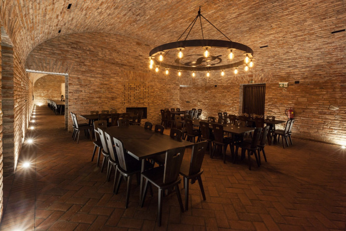 „Vinařská stodola“ ve své nadzemní části nabízí stylizovanou podnikovou prodejnu s charakteristickými zděnými archivními vinnými boxy. Do krovu otevřený prostor umožňuje v interiéru vystavit celou řadu cenných historických fragmentů - např. historický vinný lis ze zámeckého sklepa, jež ve stávajících podmínkách, atakován vlhkosti, značně strádá. Podzemní část podnikové prodejny, přístupná po monumentálním barokizujícím točitém schodišti, je ve svém interiérovém vyznění historického režného zdiva věnována provozu degustačního sklepa a centrální rotundy s nezbytným zázemím pro podzemní i nadzemní část objektů. Lineární podzemní propojení se stávající budovou znovuobjevuje vstup do Křížového sklepa v tradičním historickém schématu mimo nutnost průchodu soudobými skladovými a výrobními prostory závodu.