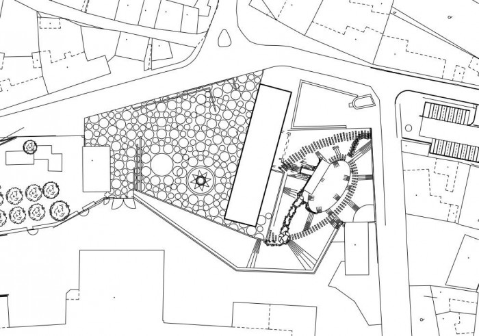 Stávající předprostor areálu v širším slova smyslu, vymezený na straně jedné výraznou lineární hmotou výrobního a administrativního provozu v tradičním tvarosloví a na straně druhé půvabnou srostlicí původních sklepů, nyní z části přestavěných na objekty individuálního bydlení, penzionů či dalších drobných komerčních provozů, trpí značnou prostorovou i plošnou fragmentací. Těžiště pomyslného náměstí tvoří zpevněná plocha vyvýšeného parkoviště, přecházející ve výrazném terénním zlomu v suchou retenční nádrž. Dominantní kovový plot s podezdívkou, oddělující pozemky závodu s technologickým zázemím historické čističky odpadních vod od veřejných ploch, dále porcuje jedinečnou prostorovou situaci. Hlavním prostorovým akcentem se tak stává nevelký objekt původní závodní vrátnice, v současnosti sloužící mimo přístup do závodu i jako sezónní prodej sudového vína či burčáku.
