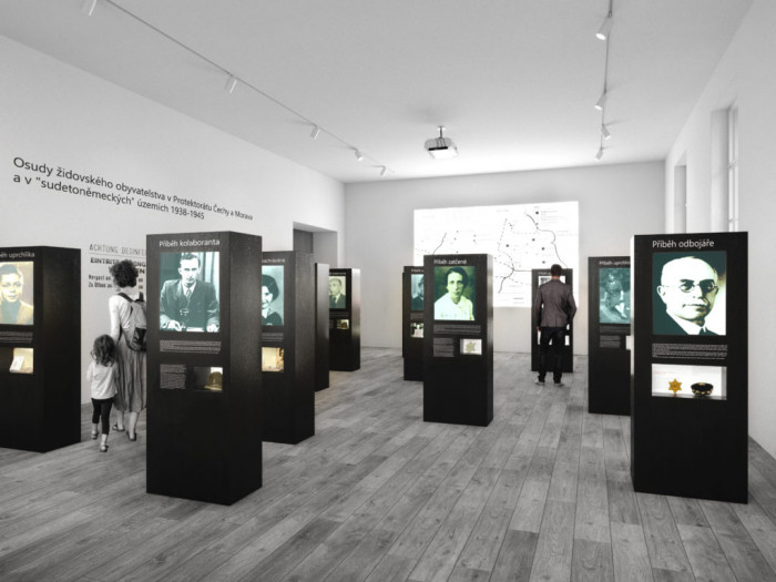 Výstavní místnosti jako prostory pro příběhy a opakování jako připomínání. Repetitivnost jednoduchého tvarosloví v expozici (školní lavice, výstavní fundus jako kvádr) a exteriéru (geometrické sochařské prvky v parku) jako vědomé připomínání tématu (paměťová insti tuce) a cesta, jak se odpoutat od formy a soustředit se na její obsah, na naléhavost sdělení. Repetitivnost navozuje pocit srozumitelnosti a snazší orientace v prostoru. Možnost využití materiálu z terezínských stromů pro výstavní fundus (paměť místa) a participativní zapojení návštěvníka jako aktéra a ne pouhého diváka skrze interaktivní části expozice (hologramová projekce, dotykové obrazovky, poslechové zvony, světlená instalace v podkroví, ad.)