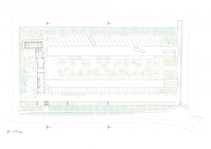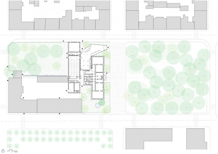 Nový vstupní prostor nabízí velkorysý a dostatečně přehledný přístup do všech částí muzea včetně nové kavárny. Vybízí ke konání zahájení výstav, koncertů, přednášek či shromažďování návštěvníků a hostů. Umožňuje ponechat bývalou školu jako samotný vystavovaný exponát obsahující vlastní expozice. Budova školy je v návrhu celkově citlivě zrenovována s velkým důrazem na obnovu všech povrchů a původních prvků. Sama vypráví příběh a jemnou vrstvou odkrývání povrchů odkazuje ke své historii.