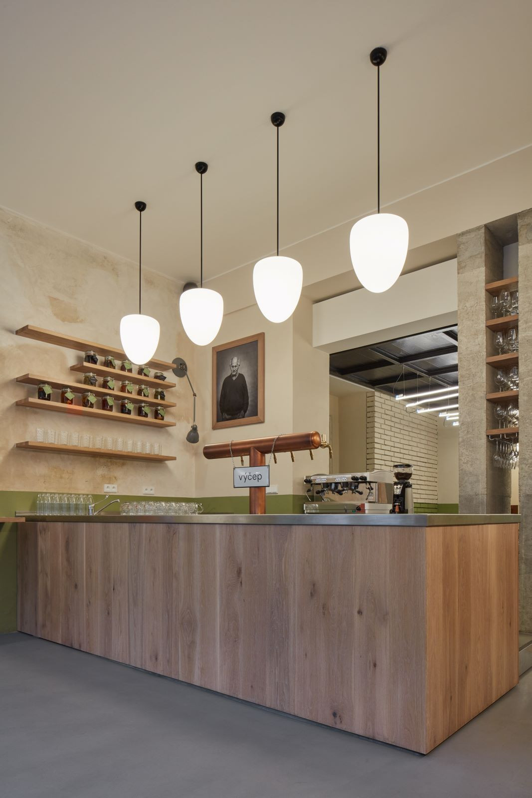 Restaurace Výčep se nachází v činžovním domě na pražských vinohradech. Naším cílem bylo navrhnout tradiční českou hospodu s tradičním českým pivem a kuchyní, vše však v interpretaci 21. století. Snažili jsme se definovat typické prvky české hospody počátku 20. století a ty pak aplikovat v současném interiéru. Základním stavebním kamenem je VÝČEP, který návštěvníka vítá hned u vstupu. U výčepu nesmí chybět místo pro „pivo na stojáka“ a samozřejmě na čepu pořádný ležák. Zde je to dalešické pivo z nedávno obnoveného historického pivovaru.