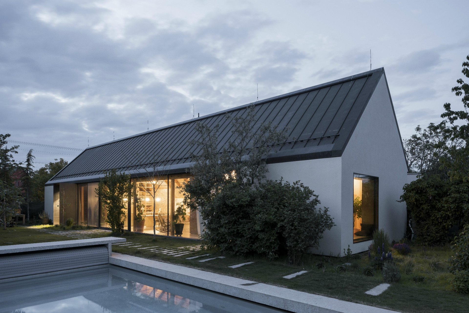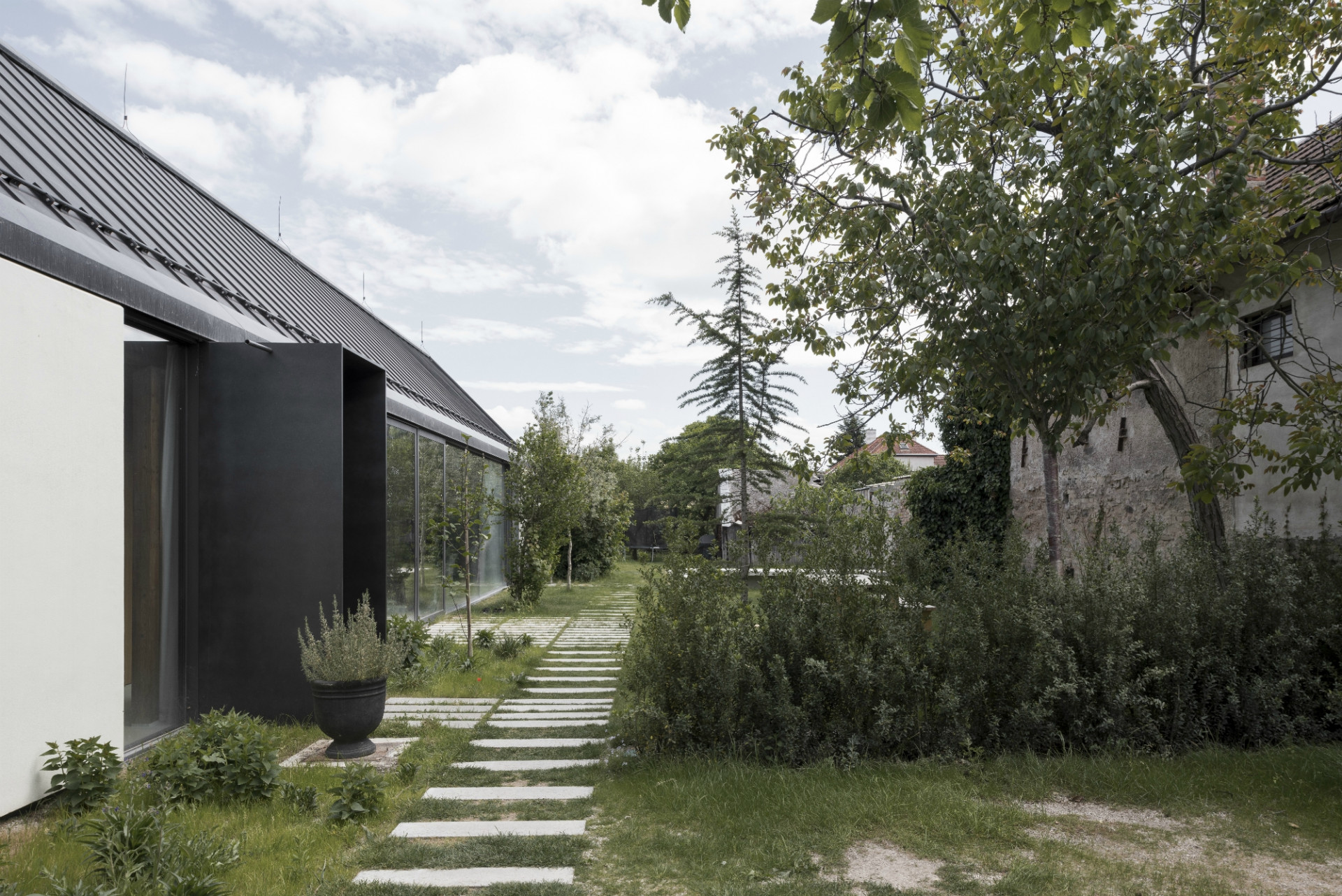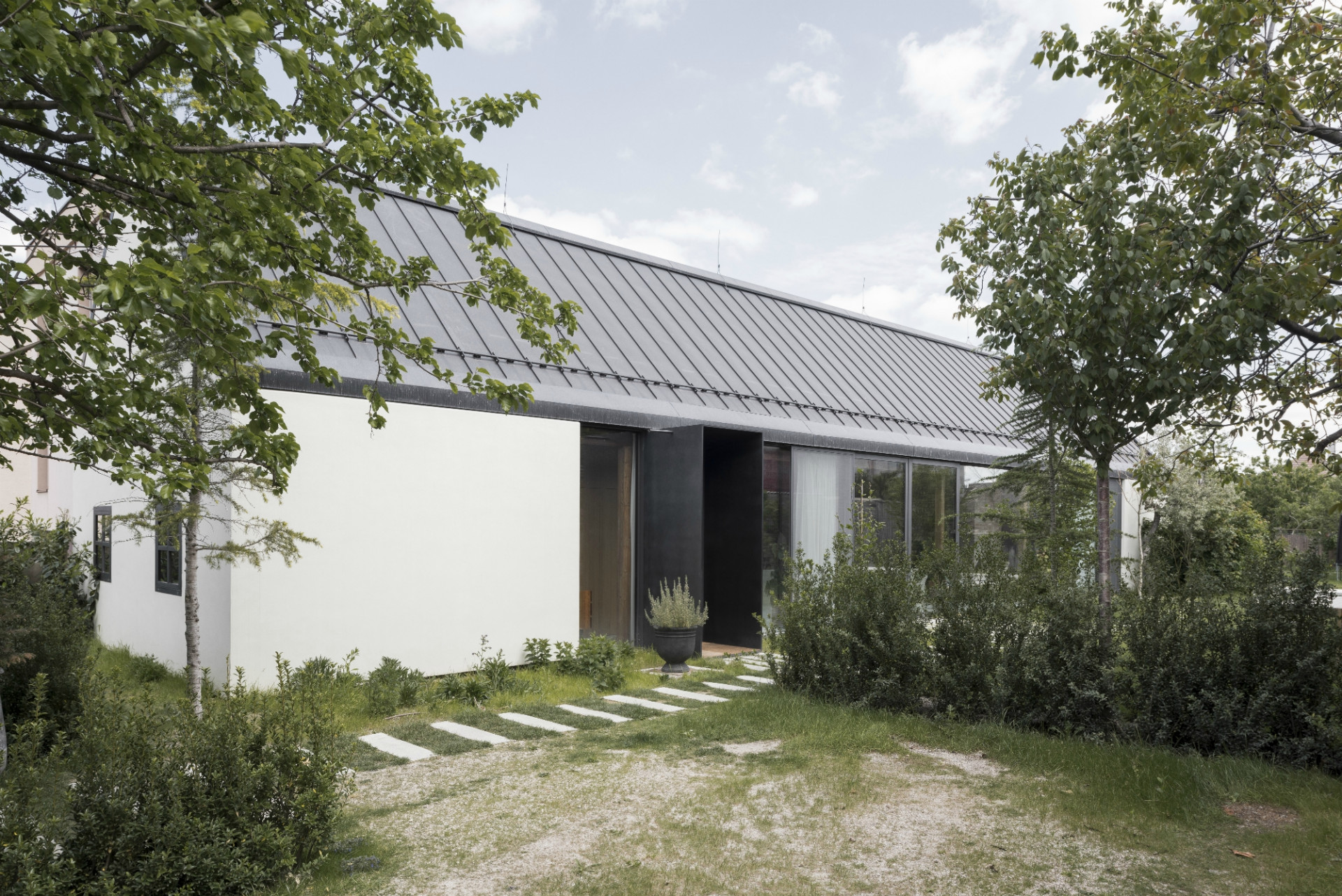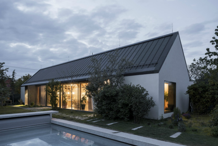 Dom svojou líniovou hmotou a priečelím nadväzuje na tradičnú vidiecku zástavbu okrajovej časti Bratislavy. Postavený je na mieste pôvodného rozobraného domu, z pôvodného priznaného režného muriva, ktoré tvorí aj jeho hlavnú interiérovú charakteristiku. Samotné členenie domu je inšpirované trojdielnym slovenským domom kde centrálnym priestorom sa stáva „pitvor” orientovaný do záhrady, ktorá je jeho neoddeliteľnou súčasťou. Výrazným konštrukčným prvkom je aj tvarovanie krovu, ktoré umožňuje prístup východného svetla pomocou svetlíkov tak, aby nenarúšal pohľadovú kontinuálnu plochu strechy zo záhrady.