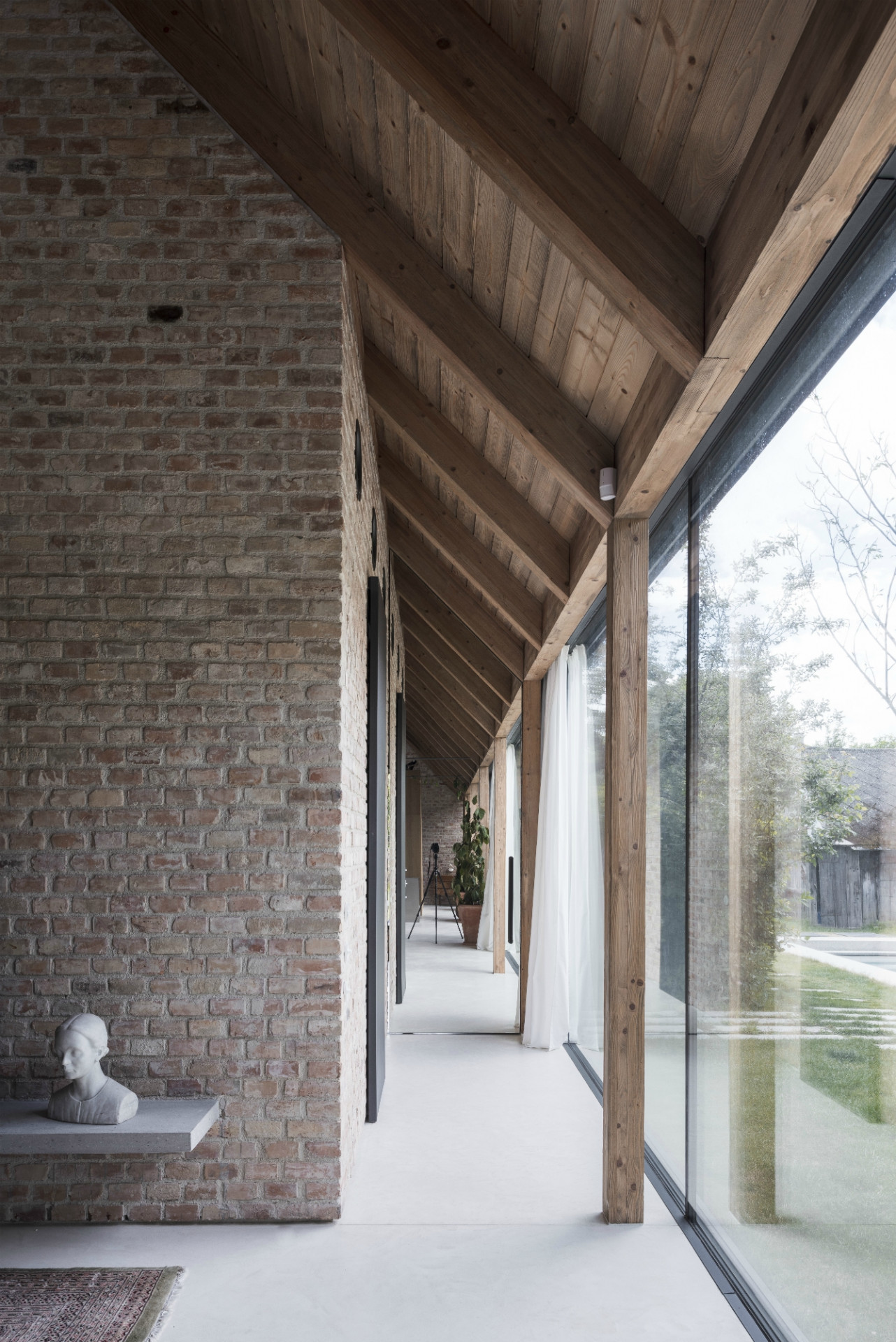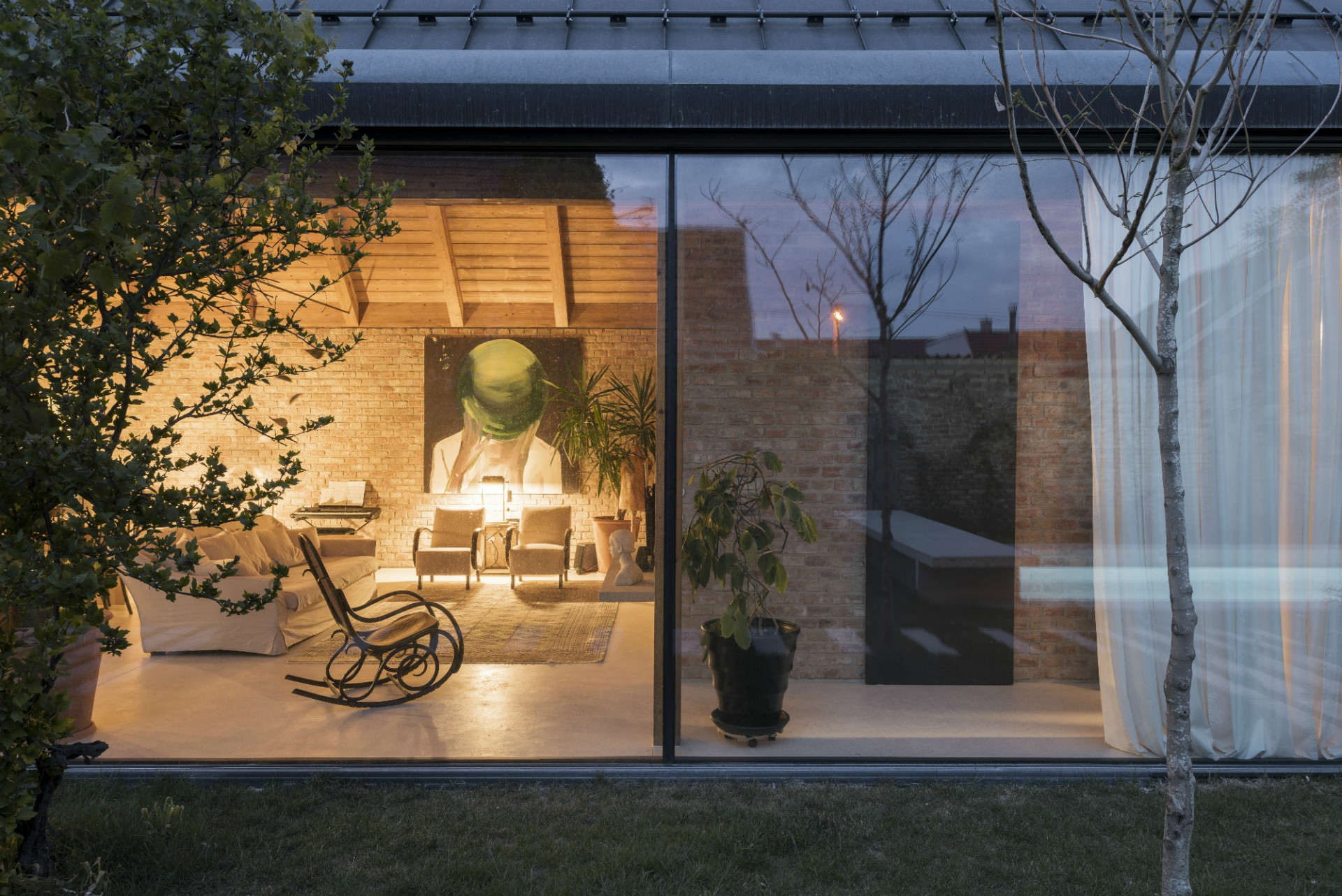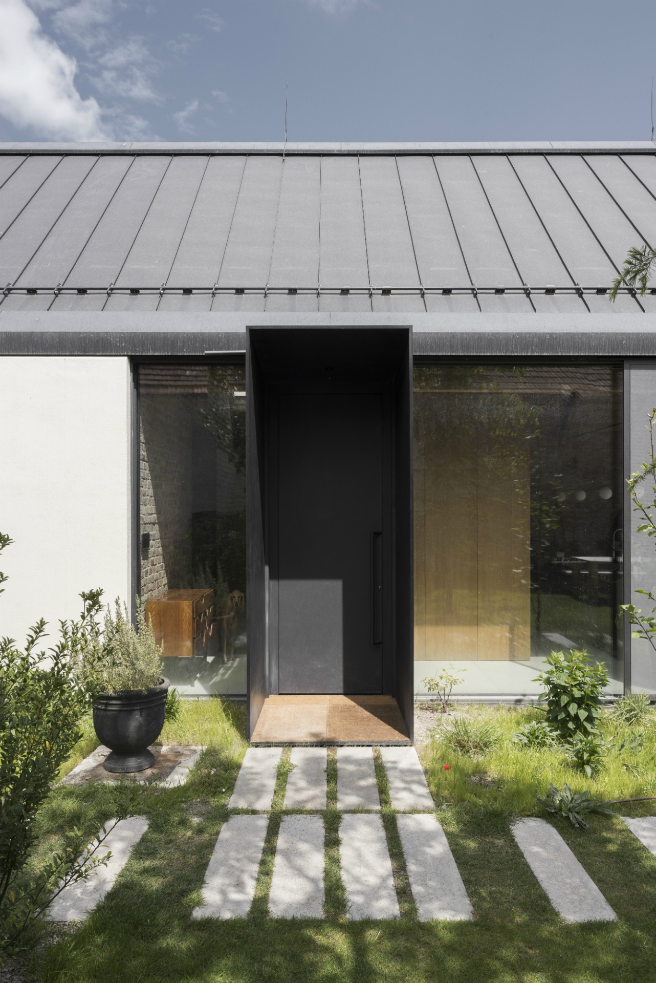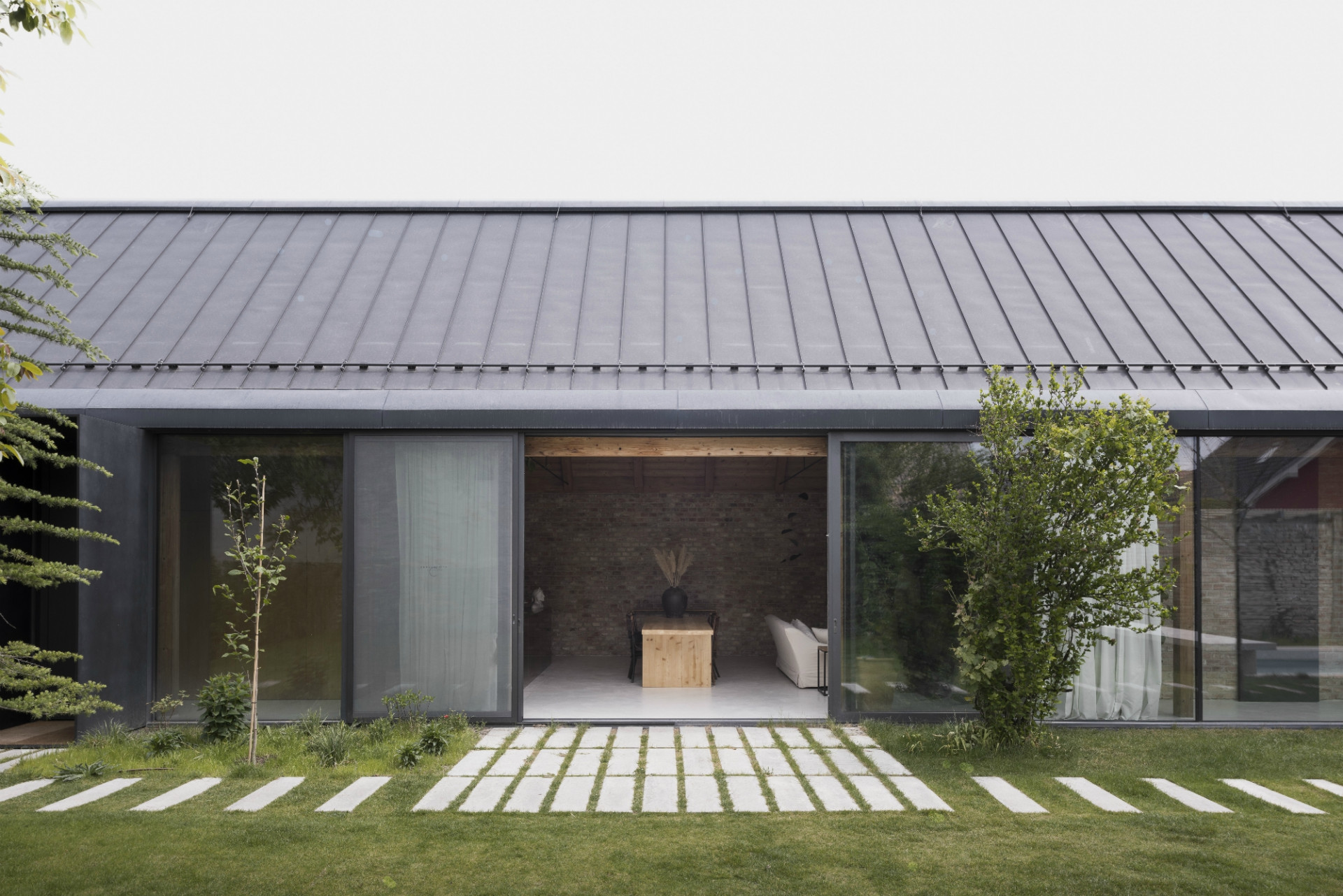 Dom svojou líniovou hmotou a priečelím nadväzuje na tradičnú vidiecku zástavbu okrajovej časti Bratislavy. Postavený je na mieste pôvodného rozobraného domu, z pôvodného priznaného režného muriva, ktoré tvorí aj jeho hlavnú interiérovú charakteristiku. Samotné členenie domu je inšpirované trojdielnym slovenským domom kde centrálnym priestorom sa stáva „pitvor” orientovaný do záhrady, ktorá je jeho neoddeliteľnou súčasťou. Výrazným konštrukčným prvkom je aj tvarovanie krovu, ktoré umožňuje prístup východného svetla pomocou svetlíkov tak, aby nenarúšal pohľadovú kontinuálnu plochu strechy zo záhrady.
