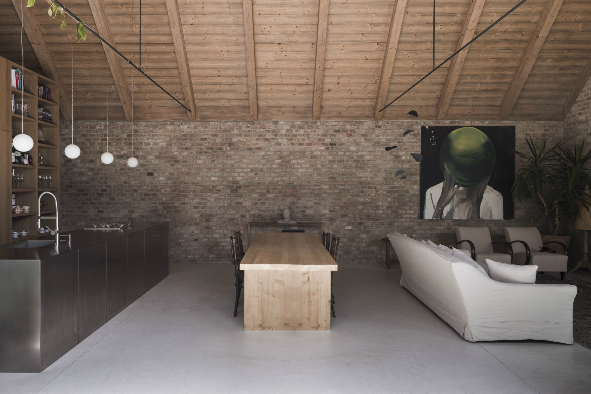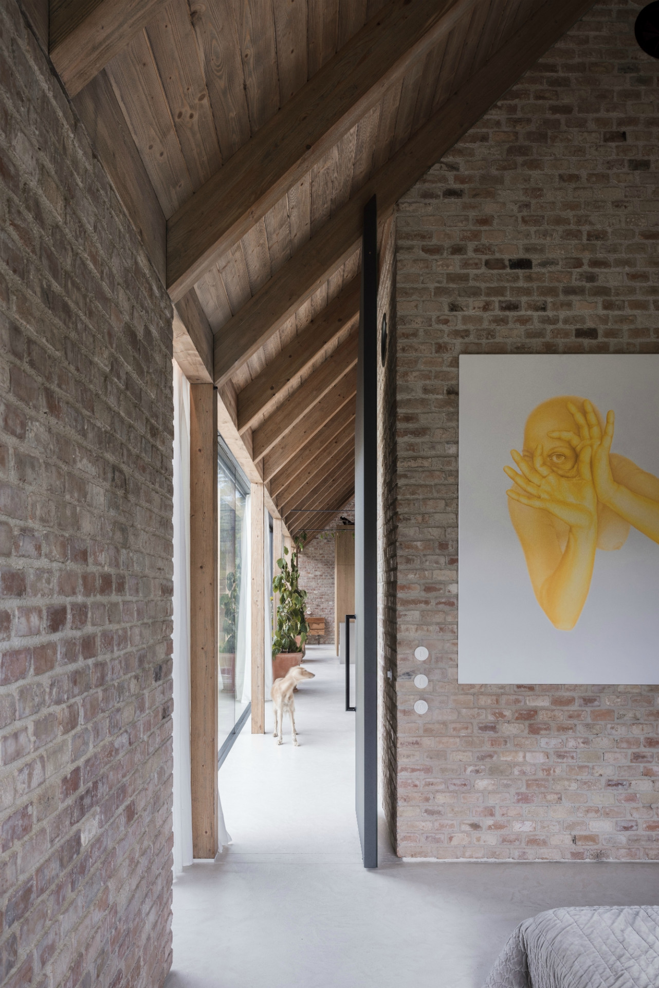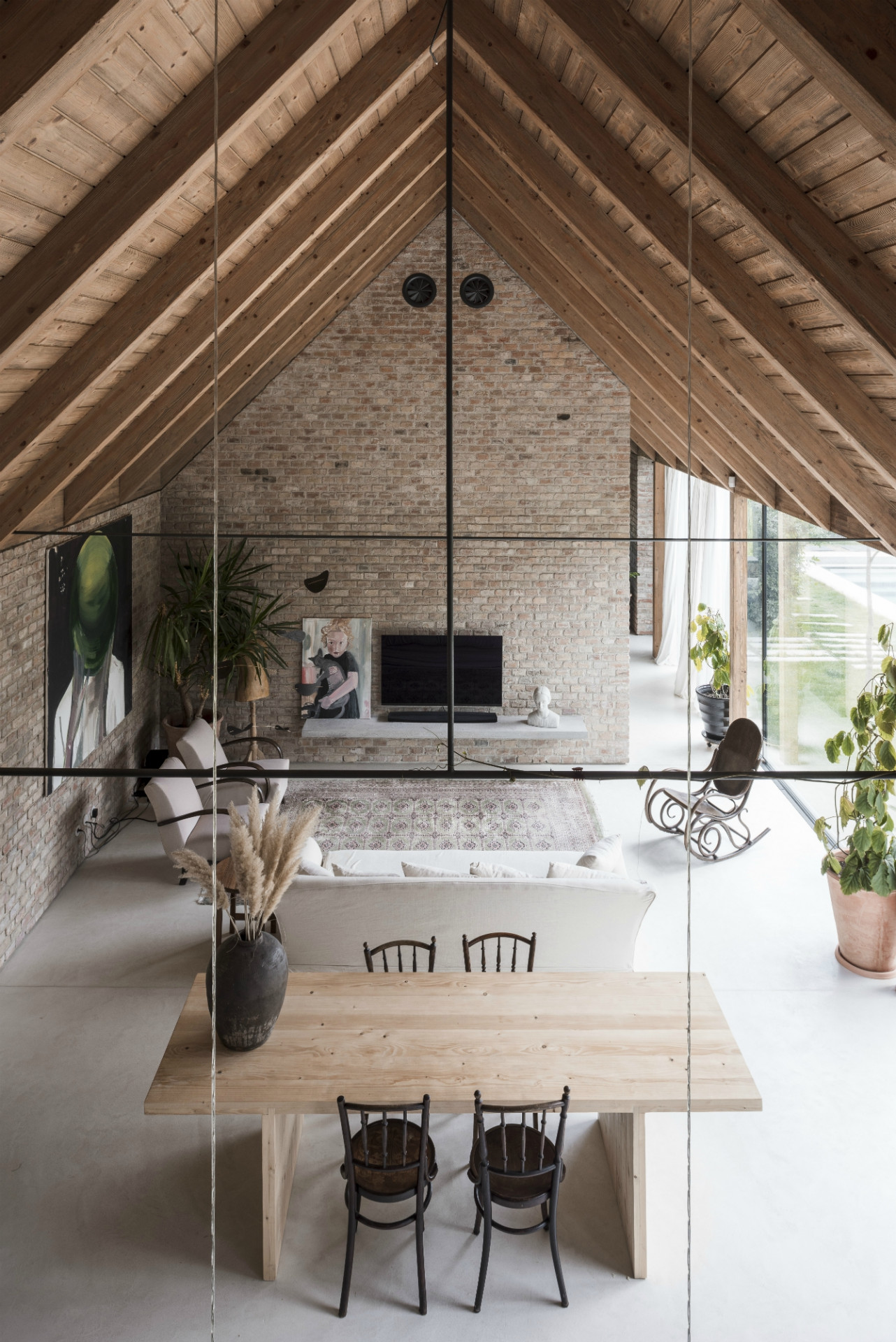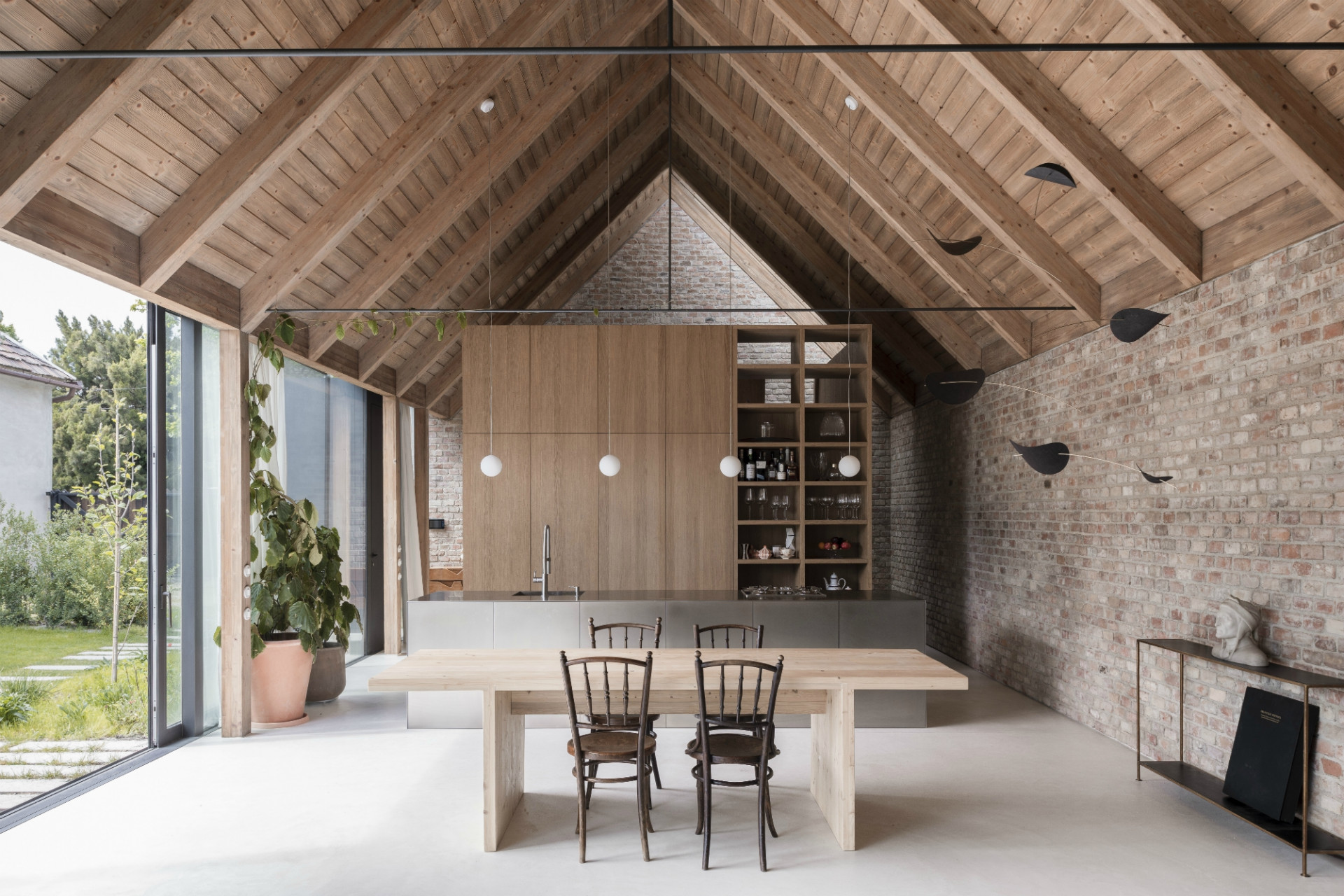 Dom svojou líniovou hmotou a priečelím nadväzuje na tradičnú vidiecku zástavbu okrajovej časti Bratislavy. Postavený je na mieste pôvodného rozobraného domu, z pôvodného priznaného režného muriva, ktoré tvorí aj jeho hlavnú interiérovú charakteristiku. Samotné členenie domu je inšpirované trojdielnym slovenským domom kde centrálnym priestorom sa stáva „pitvor” orientovaný do záhrady, ktorá je jeho neoddeliteľnou súčasťou. Výrazným konštrukčným prvkom je aj tvarovanie krovu, ktoré umožňuje prístup východného svetla pomocou svetlíkov tak, aby nenarúšal pohľadovú kontinuálnu plochu strechy zo záhrady.