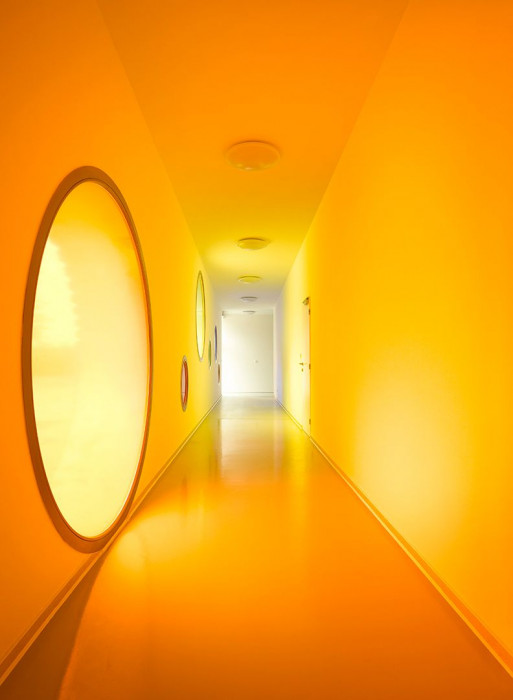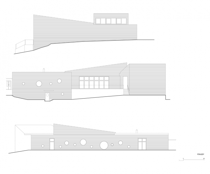 Krom úsporného prostorového plánu bylo hlavní ideou návrhu pracovat s proměnlivou výškou prostorů, která současně vytváří siluetu stavby. Identifikačním znakem přístavby a zároveň výtvarným prvkem interiéru jsou kruhová okna s barevnými fóliemi rozdílných velikostí. Barevnost se projevuje i v odstínech podlah a v koupelnách. Fasáda je obložena horizontálními modřínovými latěmi s různými odstupy.