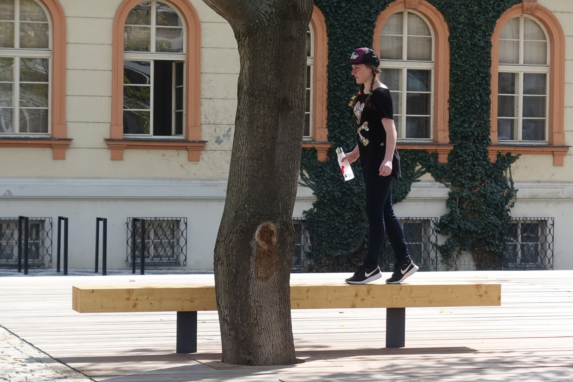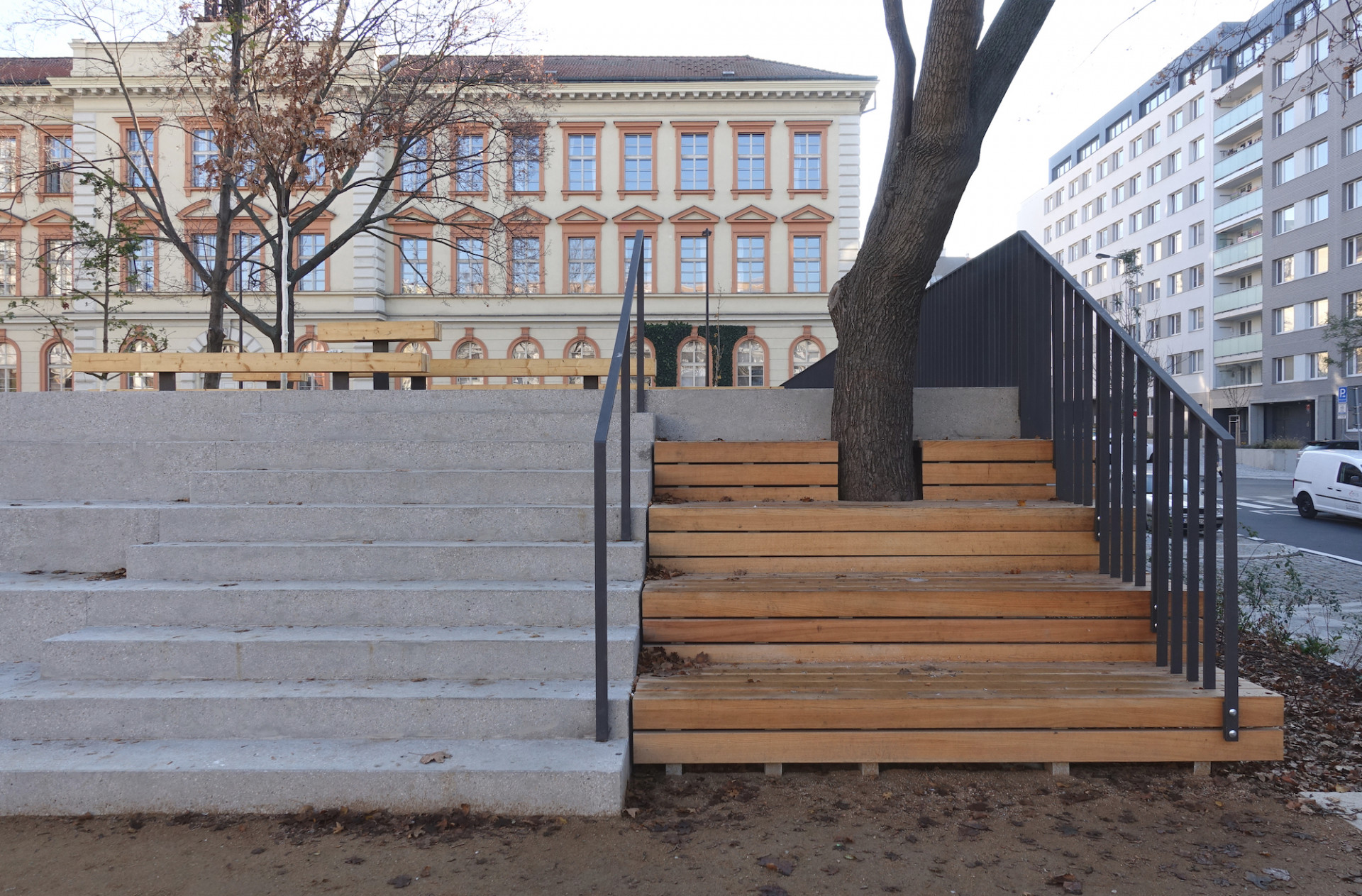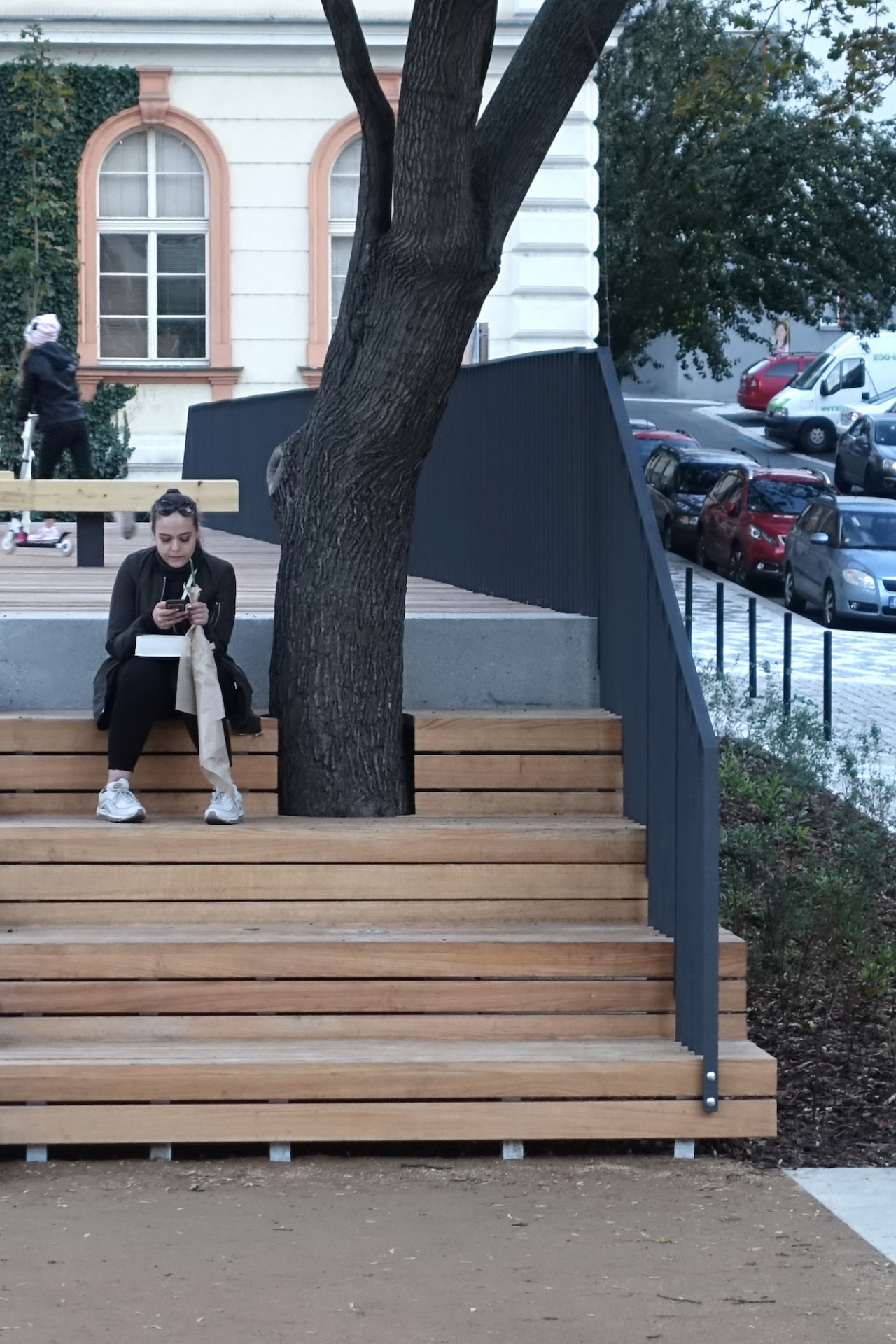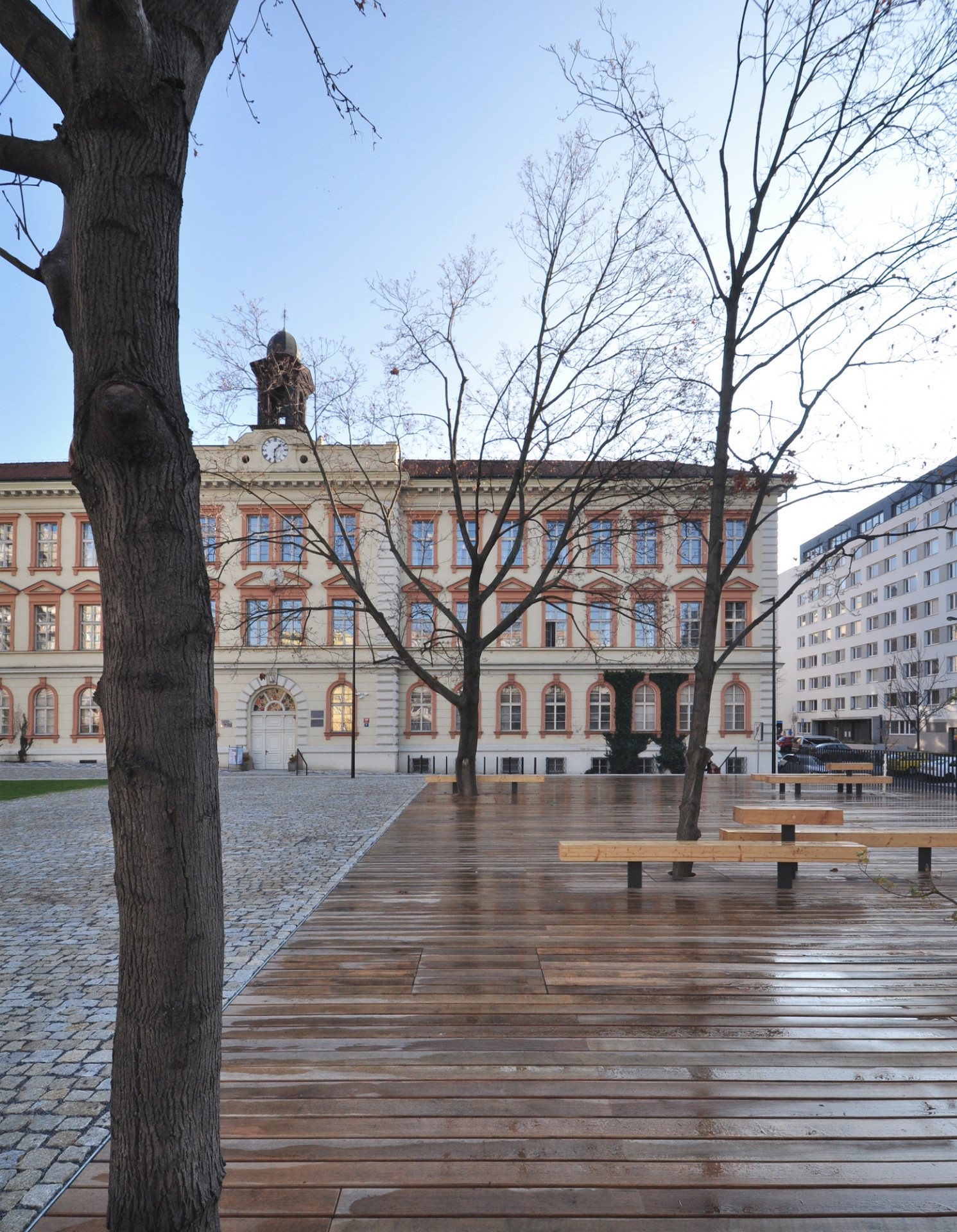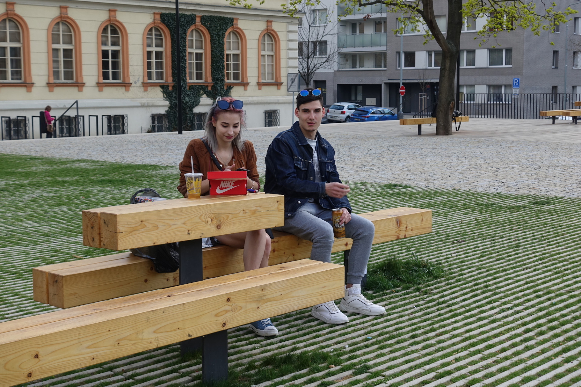 Revitalizací Komenského náměstí jsme chtěli znovu stvořit a uvést do života náměstí, které v poslední době sice neslo takové jméno, ale ve skutečnosti jím vůbec nebylo. Bylo nepřístupným místem, parkovištěm, střechou podzemní stavby. Návrh se musel vypořádat s množstvím determinant. Bylo třeba ponechat kryt civilní obrany, jehož stavba vnesla do náměstí výškové rozdíly, které komplikují připojení prostoru k okolním domům a ulicím. Chtěli jsme zachovat existující stromy – ty ale koření v nepřirozených výškách v návaznosti na výšku krytů. S ohledem na charakter místa, na jeho roli jak v urbanismu, tak životě okolní čtvrti, na lidi, kteří zde žijí, jsme se jednoznačně rozhodli pro náměstí pobytové, civilní, nikoliv primárně reprezentativní. Cílem bylo fyzickými úpravami vytvořit rámec, který nejen umožňuje, ale také iniciuje množství situací, propojujících potřeby lidí a možnosti místa.