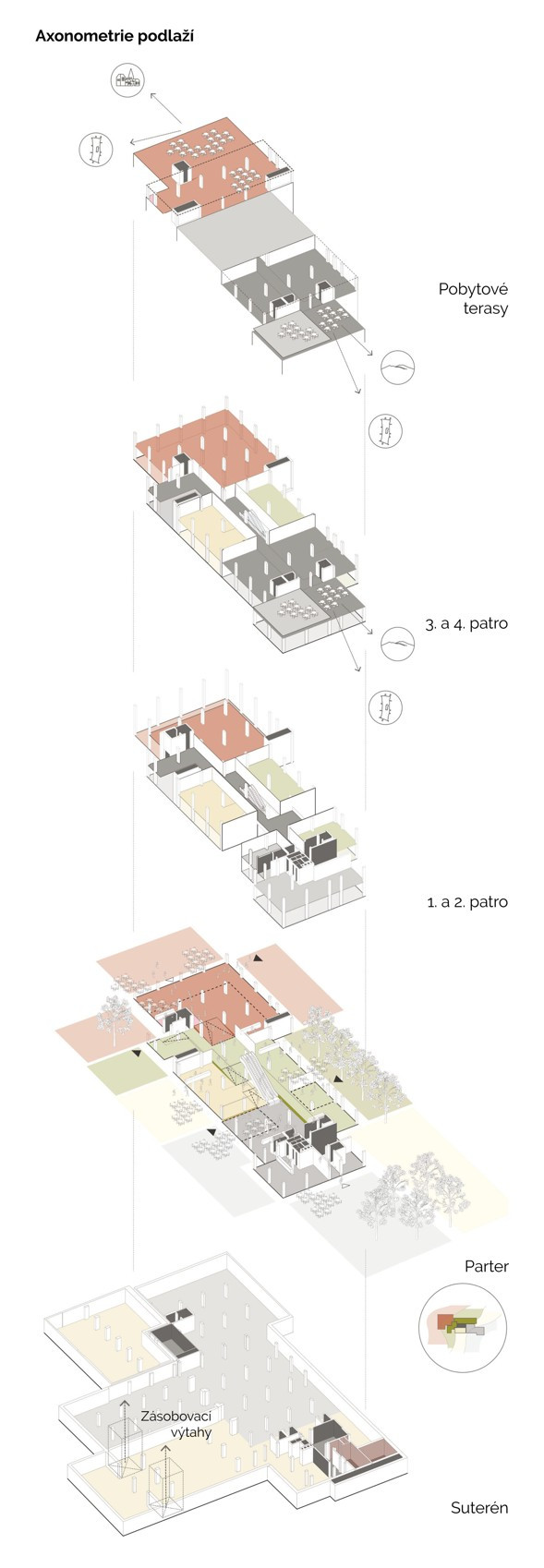 Dům je ostrovem s vlastní morfologií, která členěním navazuje na morfologii náměstí. Na platformě hran střech vznikají příležitosti dalších pobytových rovin s výhledy do krajiny vně a uvnitř města.