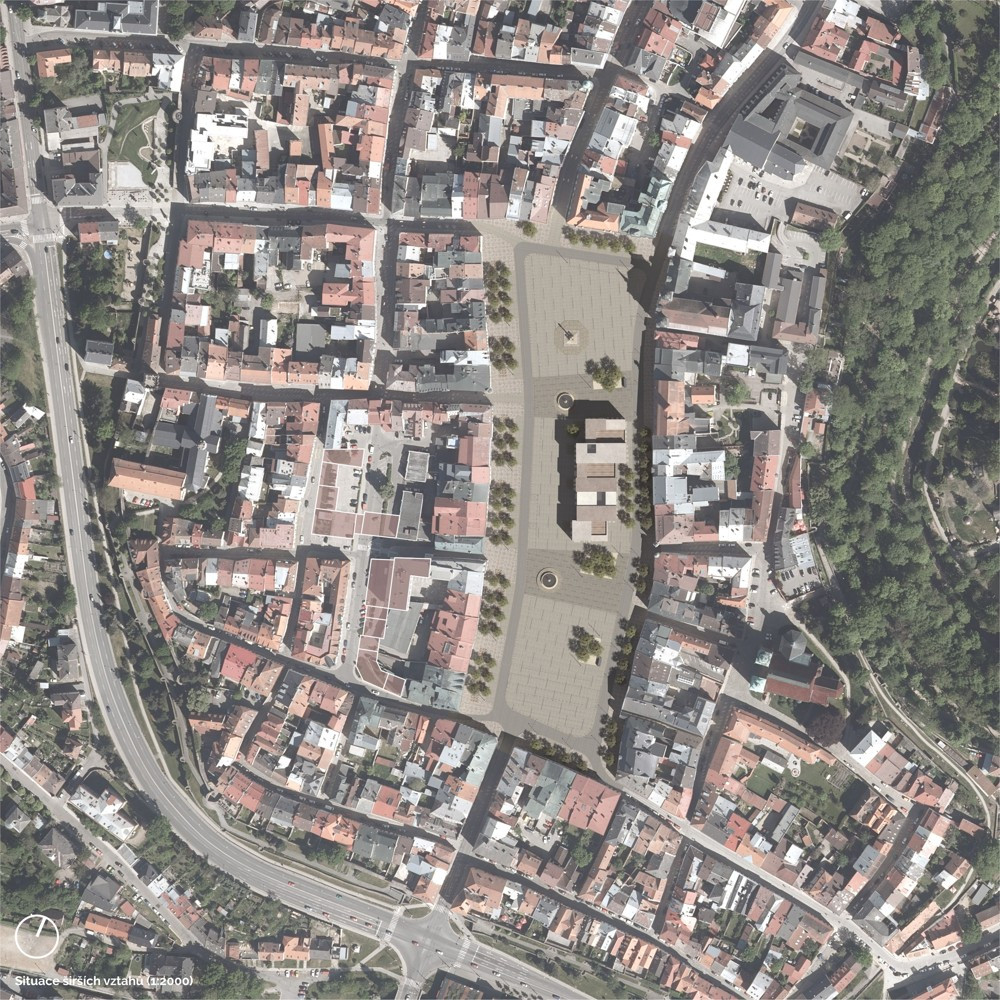 Návrh akcentuje a posiluje hlavní hodnotu náměstí, s počátky v založení města, kterou je silná prostorová a významová hierarchie. Ta je dnes oslabena, místy setřena a nevyužita. Hierarchie je založena na protínání příčných os v západovýchodním směru, které jsou hlavními komunikačními propojeními a sledují vrstevnice a podélné osy v severojižním směru, která jde po spádnici svahu a tvoří hlavní výhledovou osu.