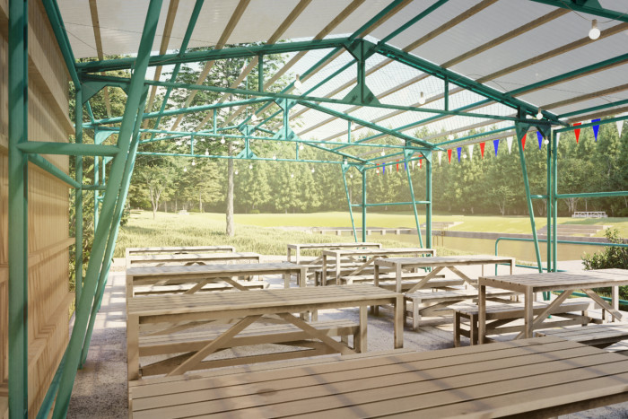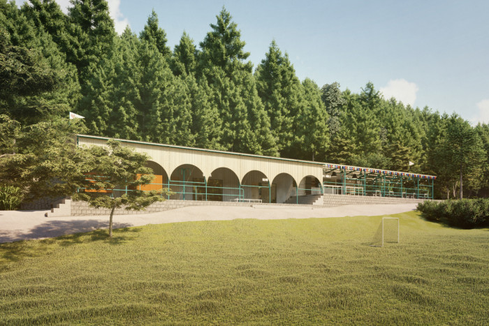 Budova nové plovárny má jednoduchou myšlenku. Snaha o co nejnižší náklady nás dovedla až k myšlence recyklované ocelové haly, pod kterou se schová celý stavební program. Výhodou takového řešení je jednoduchá etapizace celého projektu a snaha o to, aby Lesní koupaliště nebylo během následujících několika let staveništěm. Jednotlivé stavební objemy se dají realizovat postupně. První přijdou na řadu inženýrské sítě a toalety, které jsou pro provoz koupaliště zásadním vylepšením. Pak bude následovat veřejná sauna, prodejní stánek, nové převlékárny, či sprchy. Ocelovou konstrukci doplní dřevěné plochy fasád a plechová střecha. Drobné objekty jako pobytová mola mohou na koupališti vznikat formou brigád, což se nám v minulém roce velmi osvědčilo. Není nad to vzít do ruky vrtačku a postavit něco vlastníma rukama.
