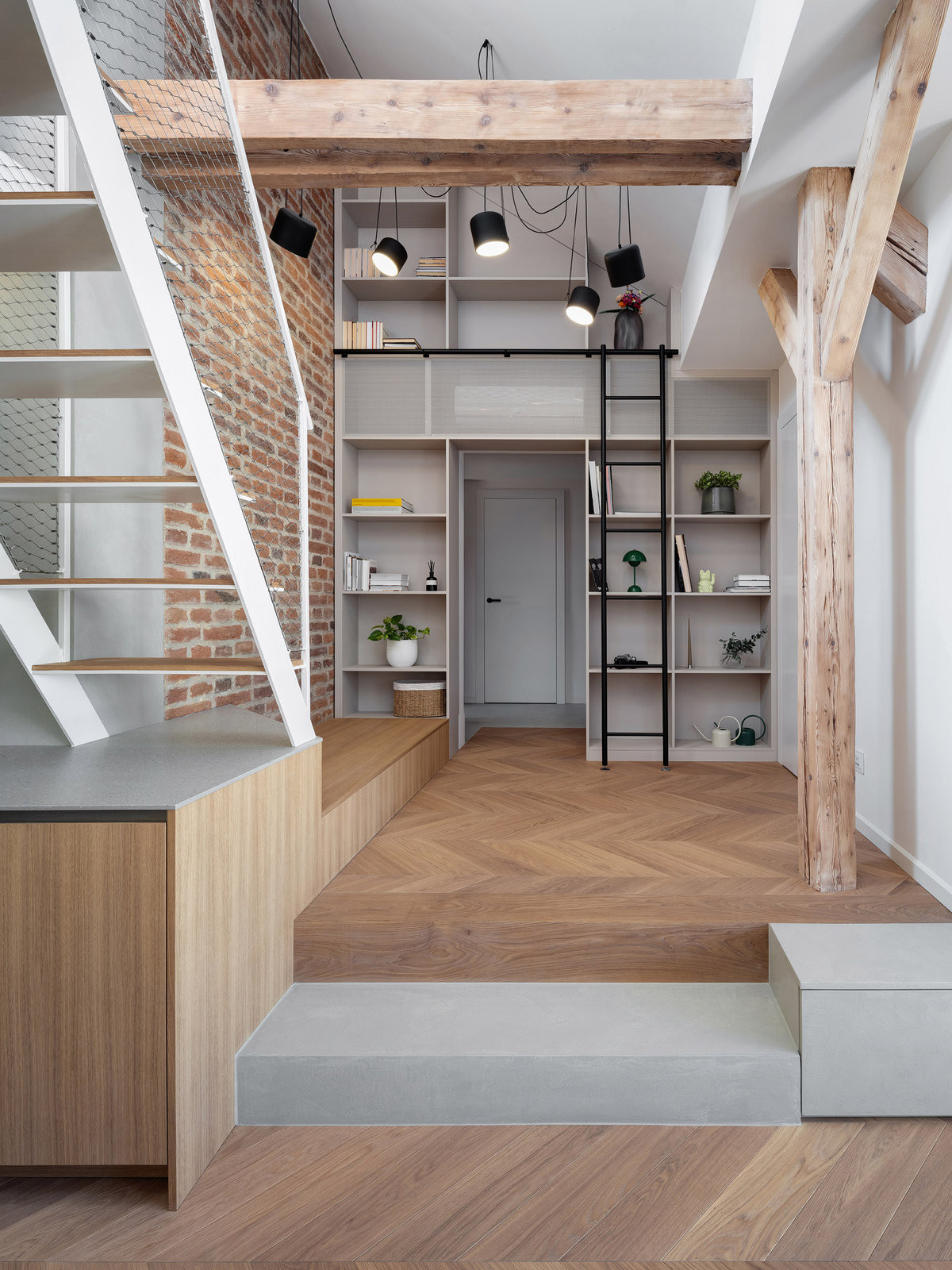Interiér DEVOTO podle návrhu architektonického studia Boq_architekti představuje přestavbu půdního prostoru na multifunkční byt, který kombinuje precizní řemeslo s originálním architektonickým pojetím detailu.