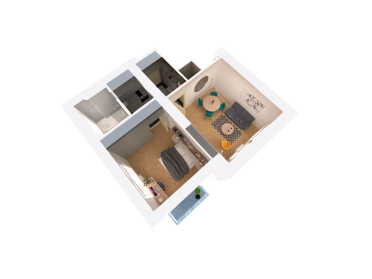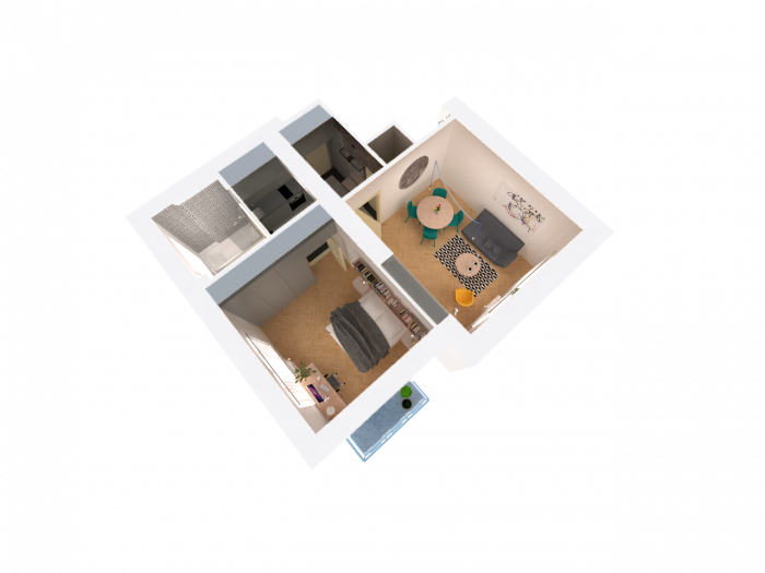Zadáním investora, který s architekty spolupracoval již podruhé, bylo vytvoření moderního a komfortního prostoru pro krátkodobé pronájmy. Původní byt byl ve špatném stavu a bylo nutné provést změnu funkčního rozvržení dispozice. Kvalitou bytu bylo velké množství dochovaných pů-vodních prvků, jako například podlaha z terrazza ve vstupní hale nebo původní dřevěné dveře.