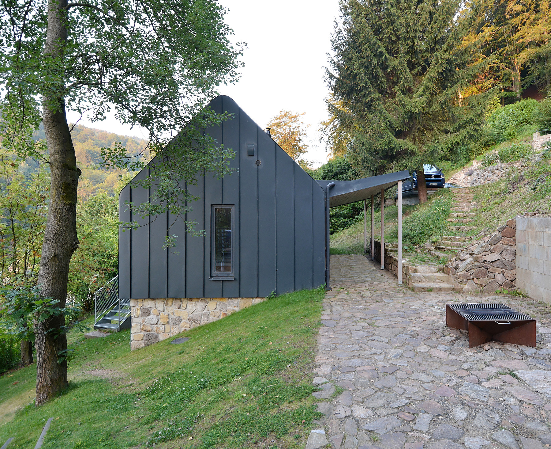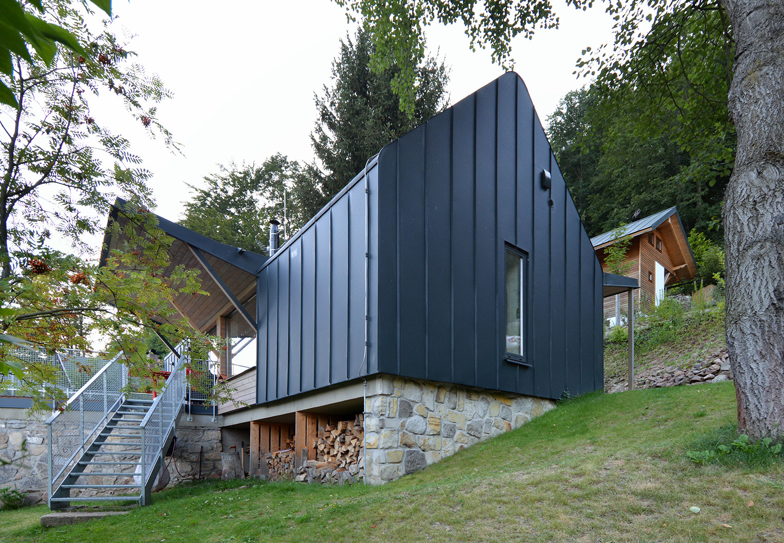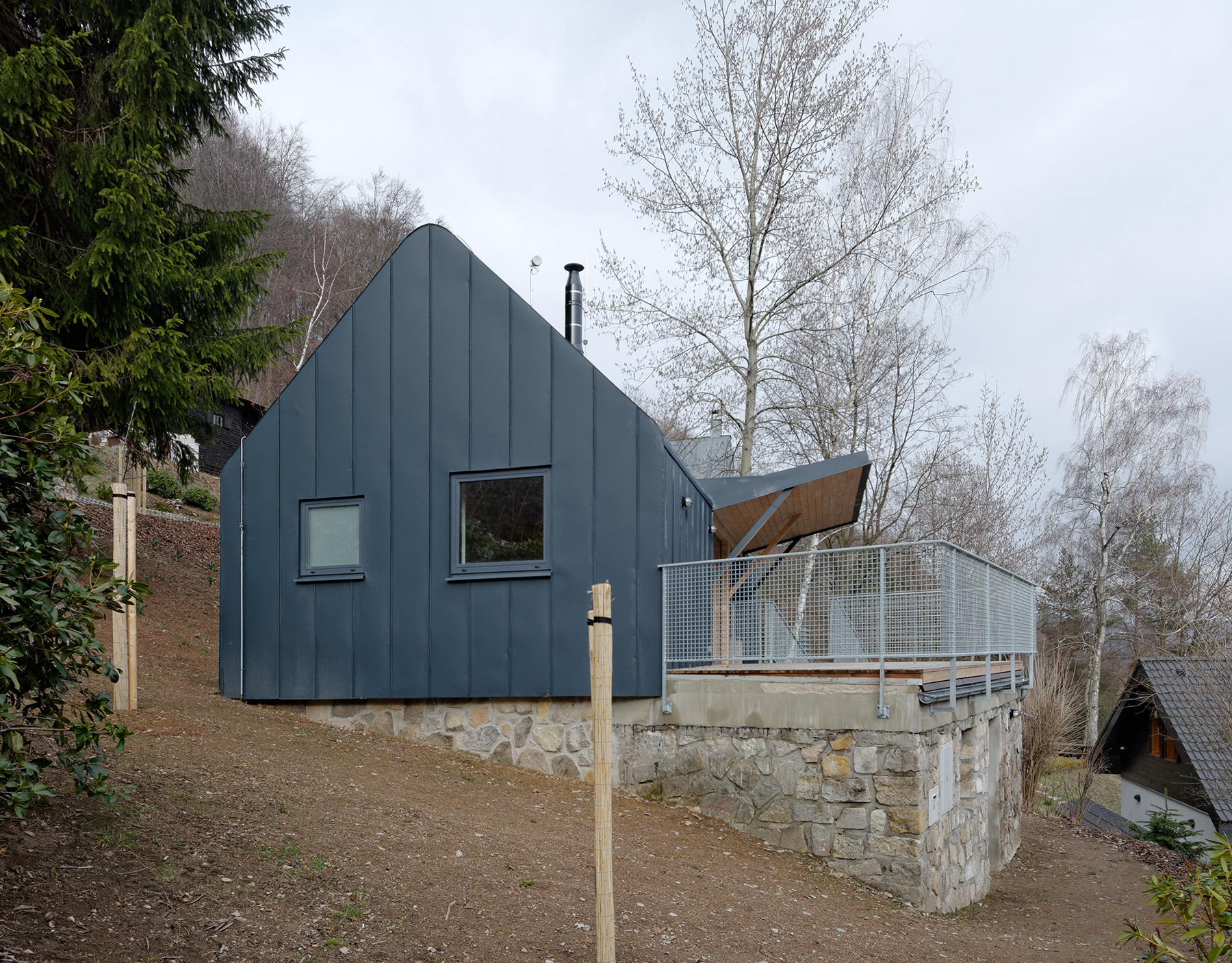 Zadní Telnice v Krušných horách je obec s jedním z nejstarších lyžařských klubů. Jedná se o rekreační oblast s chatovou zástavbou. Nový objekt využívá suterénní část původní stavby, která se na pozemku nacházela. Tím se snížil nutný objem zemních prací. Nadzemní část se oproti původní zastavěné ploše domu rozšiřuje směrem na východ k sousední chatě příbuzných, na kterou reaguje návazností vstupu i obytné terasy.