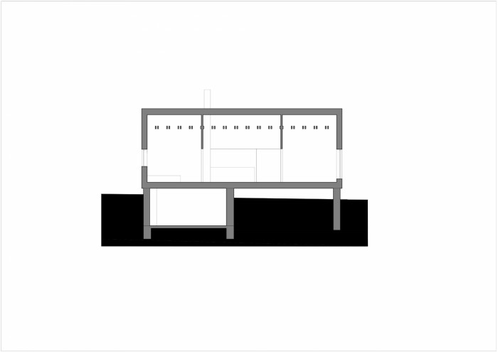 Nadzemní podlaží je provedeno jako lehká dřevostavba. Zvolená stavební technologie byla vybrána s ohledem na dostupnost materiálu a jednodušší dopravu, skladování a zpracování. Materiály pro povrchové úpravy jsou odolné pro dosažení co nejvyšší životnosti. Střecha i fasáda jsou jednotné z poplastovaného plechu s drážkou grafitové barvy kombinovaného se dřevěným obložením světlého odstínu v místě zastřešení u terasy a u vchodu.