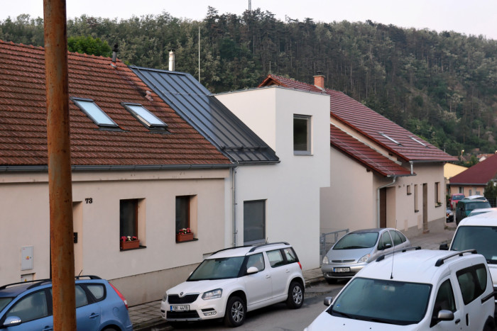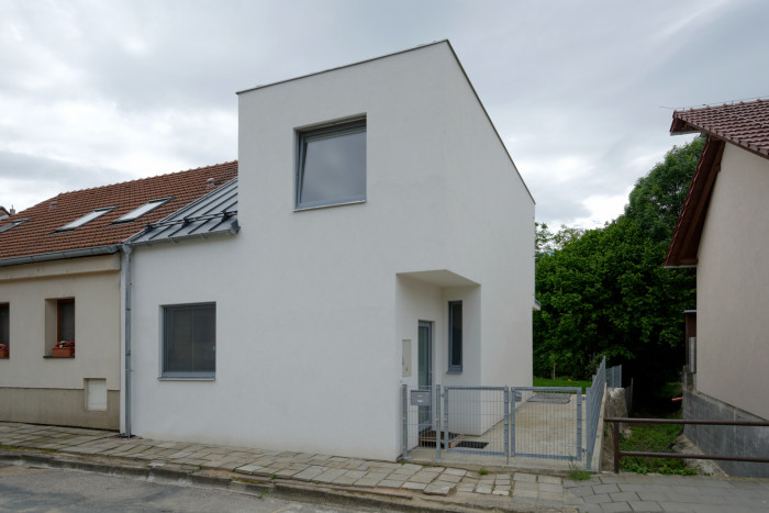 Novostavba rodinného domu doplňuje stávající souvislou zástavbu řadových domů v Jiráskově ulici v Dolních Kounicích. Zvláštnost pozice je dána sousedstvím potoka - strouhy - voda zde teče jen část roku, který přerušuje návaznost na objekt ze západní strany. V místě stával přízemní dům s klenutým sklepem. Dům byl odstraněn, sklep zůstal zachován a nad ním byla postavena nová stavba. Novostavba respektuje uliční čáru zástavby a původního zbouraného objektu. Oproti němu je kratší o 2,5 metru (až o 3,5 metru v zahradní části).