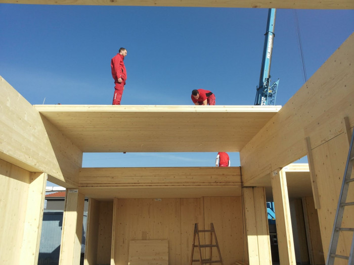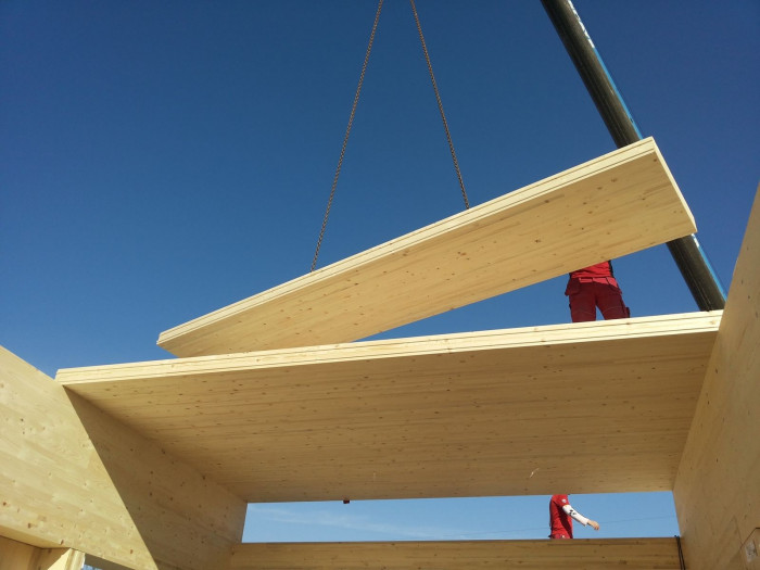 Dům je konstrukčně řešený jako dřevostavba z CLT panelů. Svislé nosné konstrukce jsou tvořené z lepených dřevěných panelů z masivního dřeva. Dřevěné stěny doplňuje soustava ocelových sloupů. Nenosné dělící konstrukce se též podílejí na statickém spolupůsobení s nosnou konstrukcí. Rodinný dům je zastřešený kombinací odvětrávaných plochých střech s klasickými jednoplášťovými.