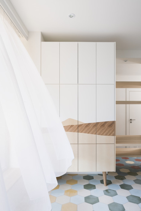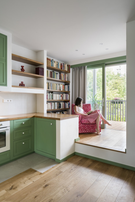 Jednotlivé byty jsme pojednali v duchu domu samého, přeloženého do osobitého životního jazyka jednotlivých rodin. Výsledek, jak věříme, reaguje na jejich vlastní životní sloh jak v celku, tak v intimnějších detailech. Někde jde o preferovaný způsob mytí vlasů, jinde o barvu baru v oblíbené kavárně, někde zas o oblíbené horské panorama, společenské vytížení, či jen veselé trauma z předchozího bydlení.