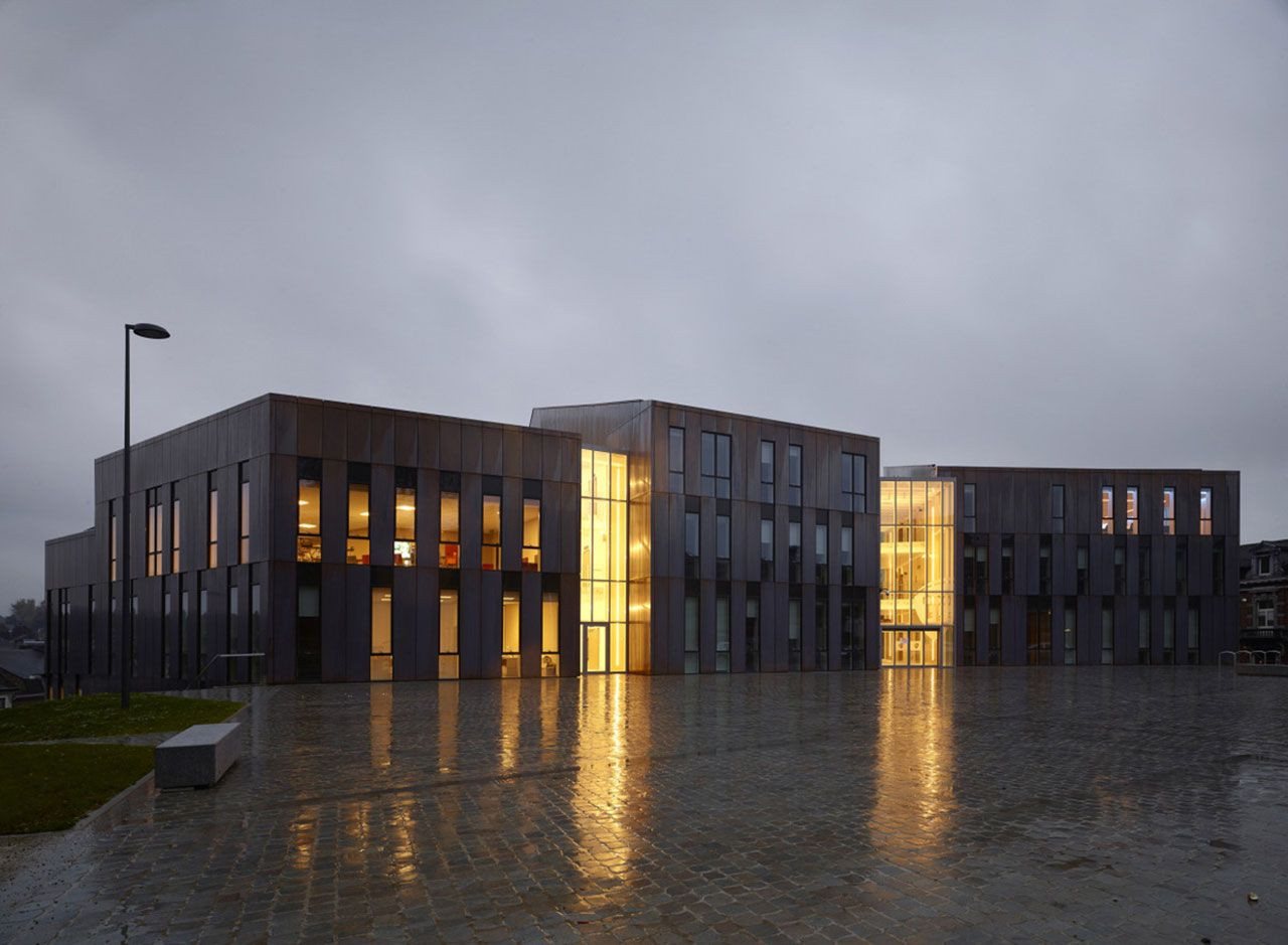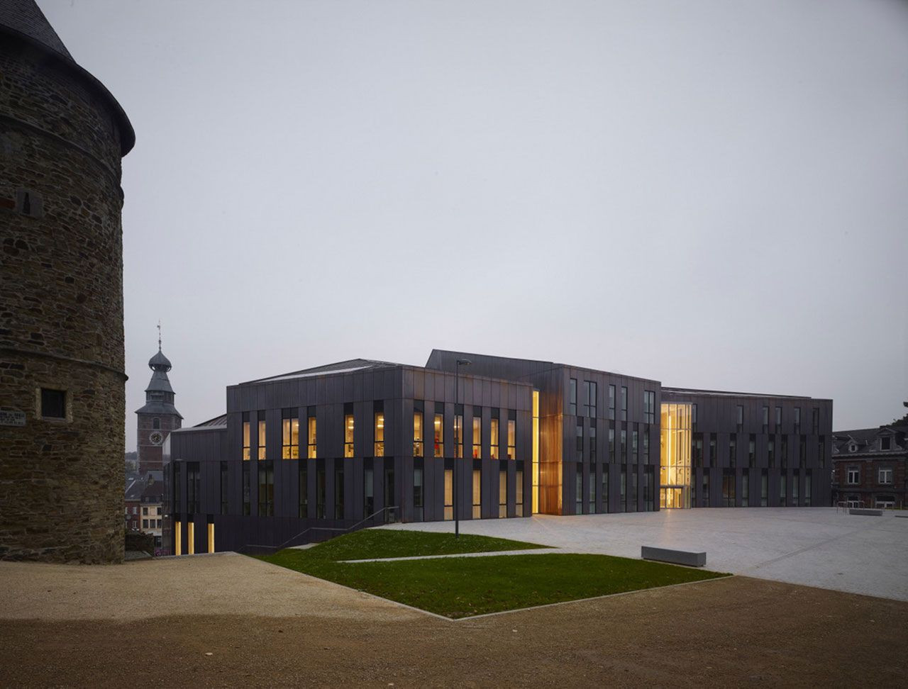 Definice specifických pohledů na symboly Gembloux pomáhá procesu roztříštění jednotné hmoty budovy na tři menší části, které se přizpůsobí měřítku města a hostí různé funkce. Výsledné fragmenty, pokryté měděným pláštěm, využívají na pozemku projektu rozličných výšek a vytváří členěný sled vzájemně se doplňujících veřejných prostranství. Mezi těmito bloky jsou prosklené plochy: prázdný prostor mezi plnou hmotou staveb, přechodová místa, kde může uživatel ocenit okolní panoráma města. Ve výsledku se projekt snaží vytvořit nový střed existujícího města, na který se zároveň dá nahlížet jako na příležitost k vylepšení města: stavba se zapojuje do dialogu s městem a odhaluje skutečný charakter okolí. Projekt rezonuje se starobylými hlasy města a to jak z hlediska jeho materiálů, tak měnícím se vztahem, ovlivňovaným atmosférickými a světelnými podmínkami lokality.