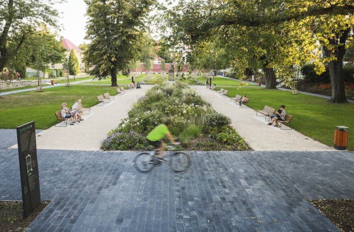Výrazné trvalkové záhony lemované promenádou s lavičkami jsou voleny tak, aby se proměňovaly již od jara, kdy rozkvetou první cibuloviny až do pozdního podzimu, kdy kvetou astry a okrasné trávy se barví do zlatých barev.