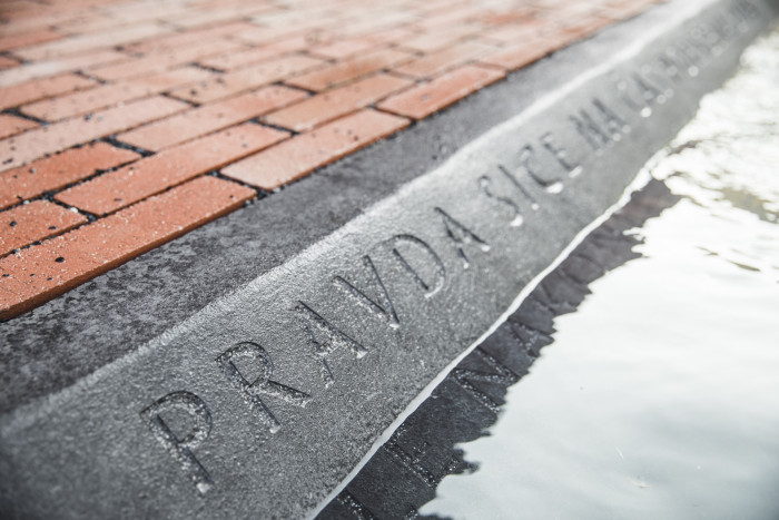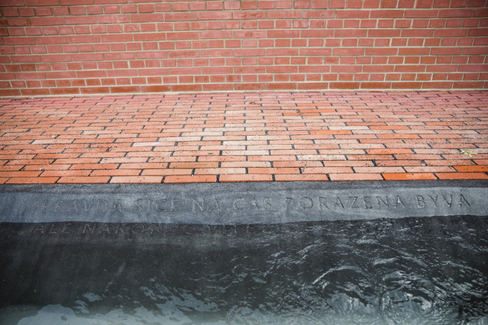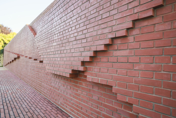 Nový Husův park v Praze doplňuje cihlová reliéfní zeď se speciálním nanonátěrem pro čištění vzduchu