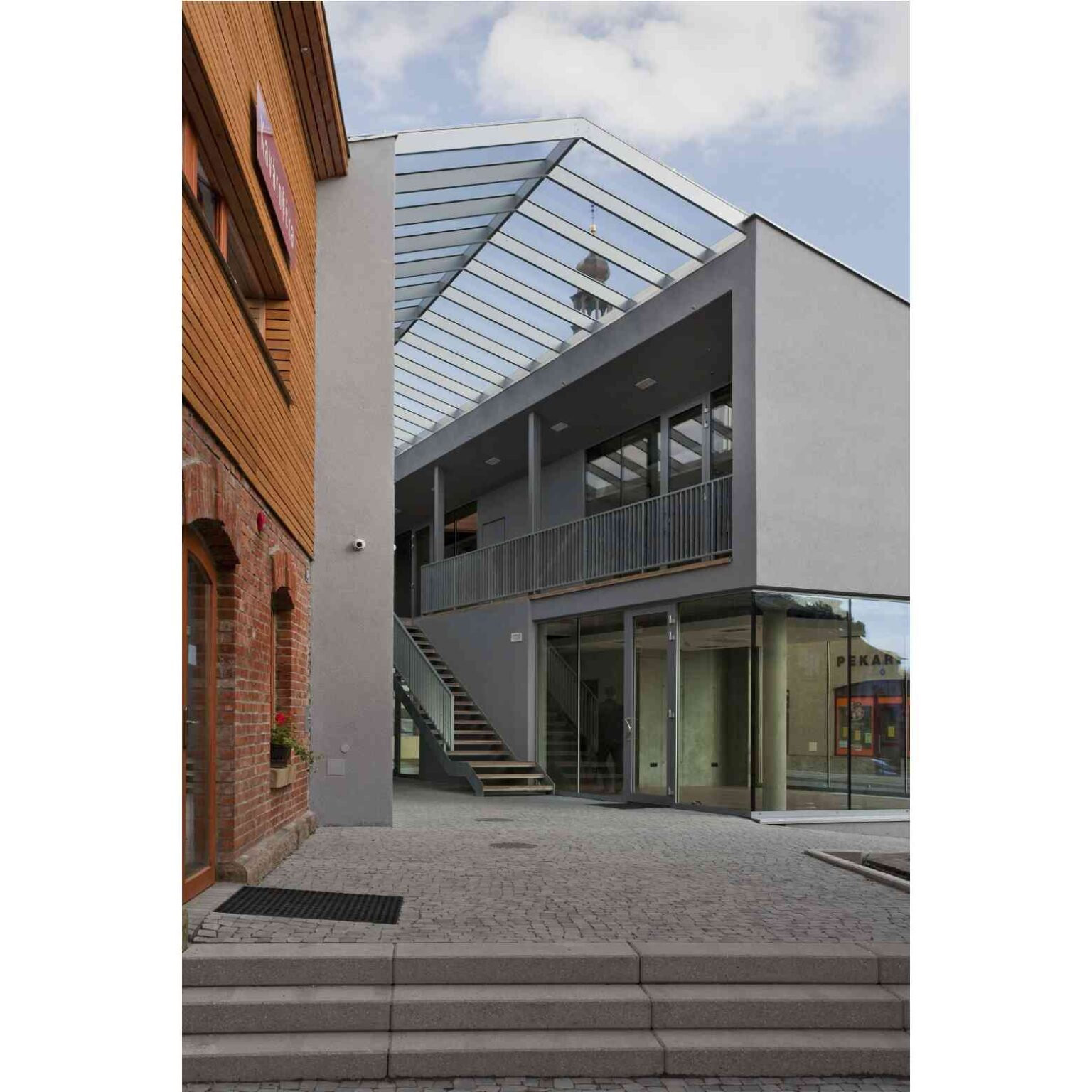 Obchodní dům v Rožnově pod Radhoštěm je složen ze betonové novostavby a staré části, která je z režného zdiva. Novostavba je rozdělená na dvě dvoupodlažní hmoty, mezi kterými se nachází pasáž zakrytá skleněnou střechou. Zajímavostí je vnitřní pavlačová část s přístupem do jednotlivých prodejen. Neméně pozoruhodný je respekt k práci původních stavitelů – zachování původní budovy, která byla pečlivě očištěna, defekty restaurovány a vnější část naimpregnována vůči povětrnostním vlivům. Byl upraven krov se zaatikovým skrytým žlabem.