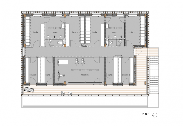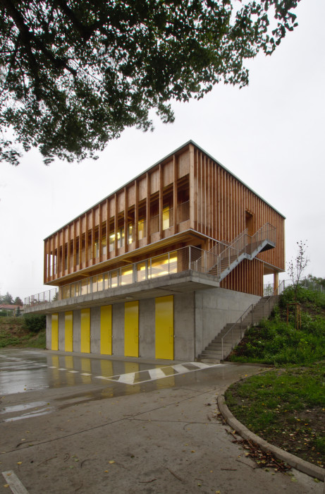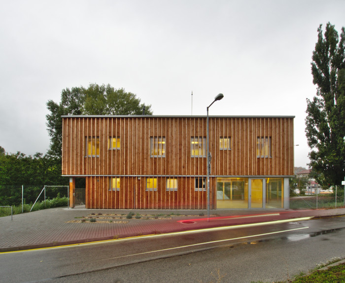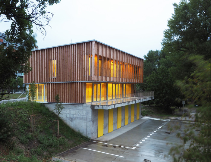 Trojpodlažný objekt lodenice pri Karloveskom ramene v Bratislave sme projektovali pre Mestskú časť Karlova Ves. Základy a suterén sú navrhnuté ako železobetónová konštrukcia z pohľadového betónu, 1. a 2. nadzemné podlažie je riešené ako drevená konštrukcia, kombinovaná s oceľovými stužujúcimi prvkami. Suterénne podlažie objektu je vyhradené hangáru pre lode. Ide o nevykurovaný priestor pri ktorom sa počíta s občasným zaplavením, s minimálnym technickým vybavením a s prístupom z exteriéru (z čelnej fasády).