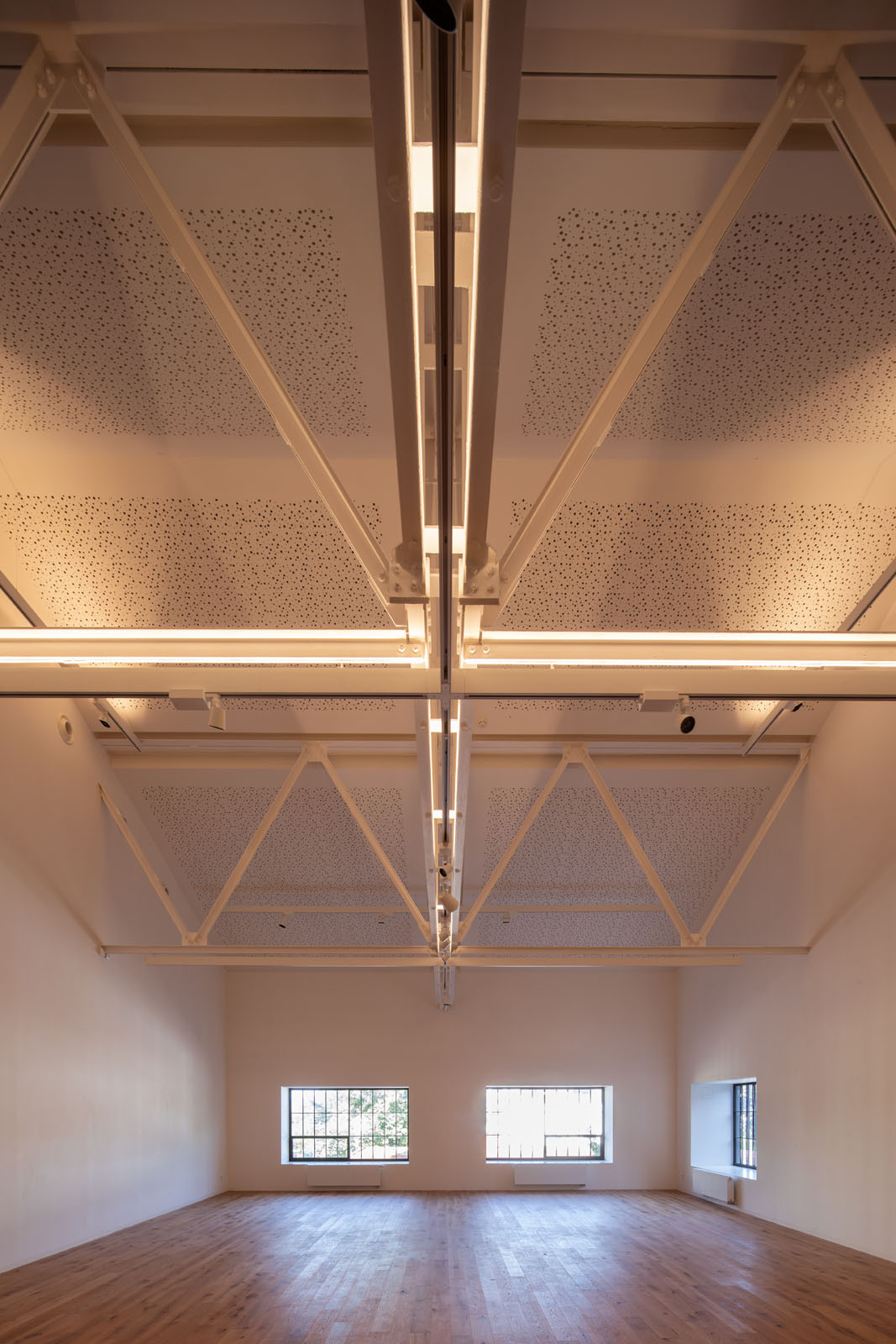 Specifická náplň objektu vyžadovala zvláštní přístup k návrhu akustického řešení, speciálních světelných podmínek i technologií zajišťujících optimální kvalitu vnitřního prostředí. Požadavkem provozovatelů byla dostatečná světlá výška umožňující vystavování rozměrnějších exponátů, takže se architekti při návrhu všech potřebných technologií museli vyrovnat s omezenou možností instalace podhledů. Systémem snížených sádrokartonových lemů na výšku 2,6 metru kolem obvodu každé výstavní místnosti bylo dosaženo kompromisu, aby hlavní plocha zůstala ve světlé výšce cca 3 metrů a současně vznikl dostatečný prostor pro umístění všech potřebných technologií. Hranu lemu využili architekti také pro instalaci zapuštěného osvětlovacího systému. Optimální akustiku výstavních prostor zajišťuje perforovaný akustický sádrokartonový podhled.