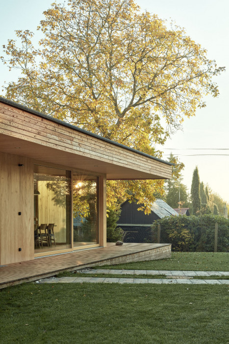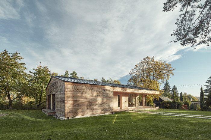 Snad se povedlo navrhnout kompaktní minimalistický rodinný dům s úzkou vazbou na stávající zahradu, postavený z obnovitelných materiálů a provozovaný nízkoenergeticky, který poskytuje svým obyvatelům udržitelný komfort bez nutnosti dělat nepřijatelné estetické a ekonomické ústupky. A snad v chatové osadě nepůsobí jako pěst na oko.