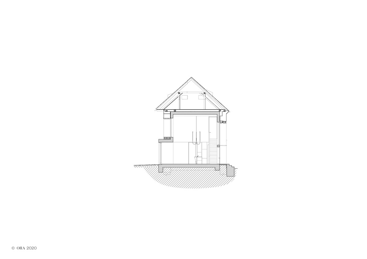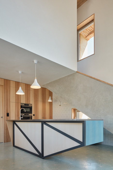 Dům v sobě spojuje nízké i vysoké. My jsme sem vložili další současnou vrstvu, která se svým účelem liší od všech předešlých. Mezi novou a původní strukturou je udržovaná větraná mezera, konstrukce se nedotýkají. Nová struktura je místy vůči staré lehce posunutá. Okna nesedí úplně přesně na otvory ve staré zdi a stává se, že stará zeď je díky tomu přítomná i v interiéru. Dochází k vizuálnímu prolínání obou světů. Novostavba se skrze otvory ve staré zdi dere ven, naopak stará zeď skrze nová okna vstupuje dovnitř.