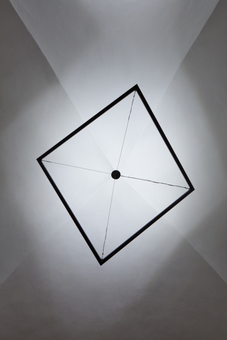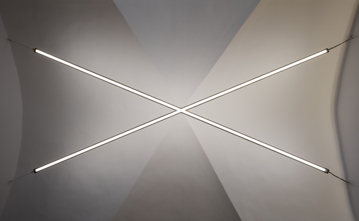 Kleneb se nedotýkáme, pouze je nasvětlujeme. Křížení jsme použili jako základní motiv, který prostupuje celým interiérem.