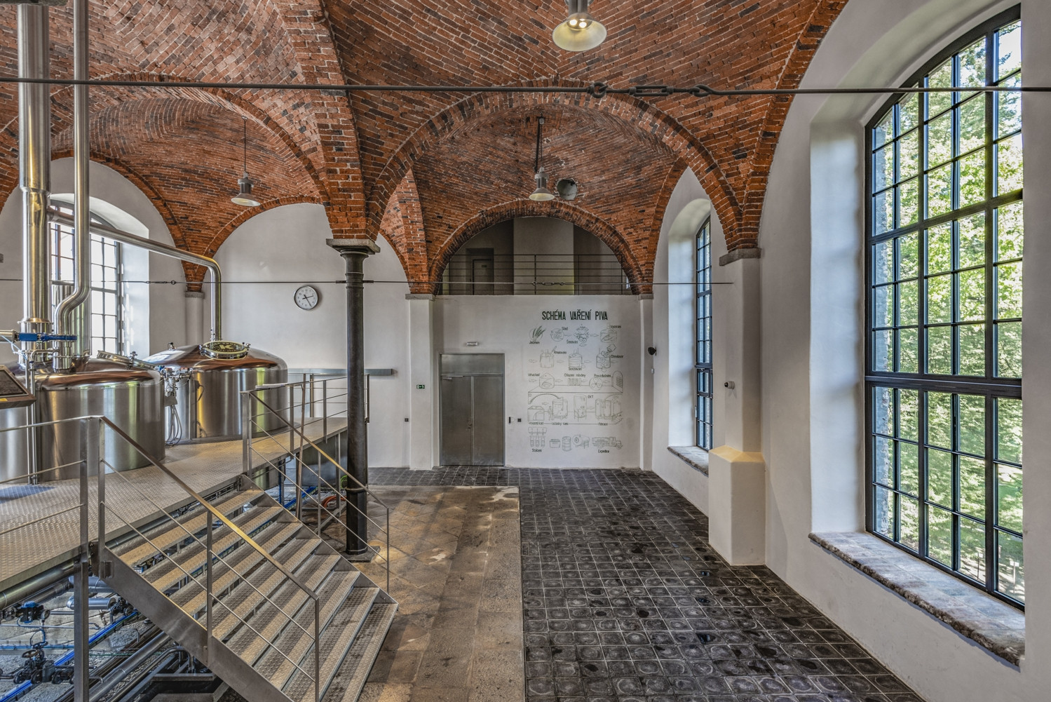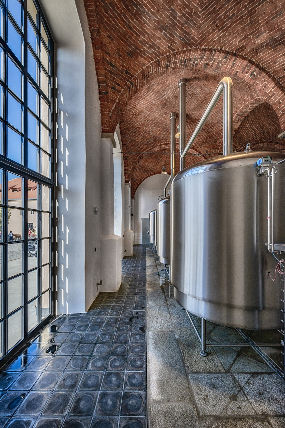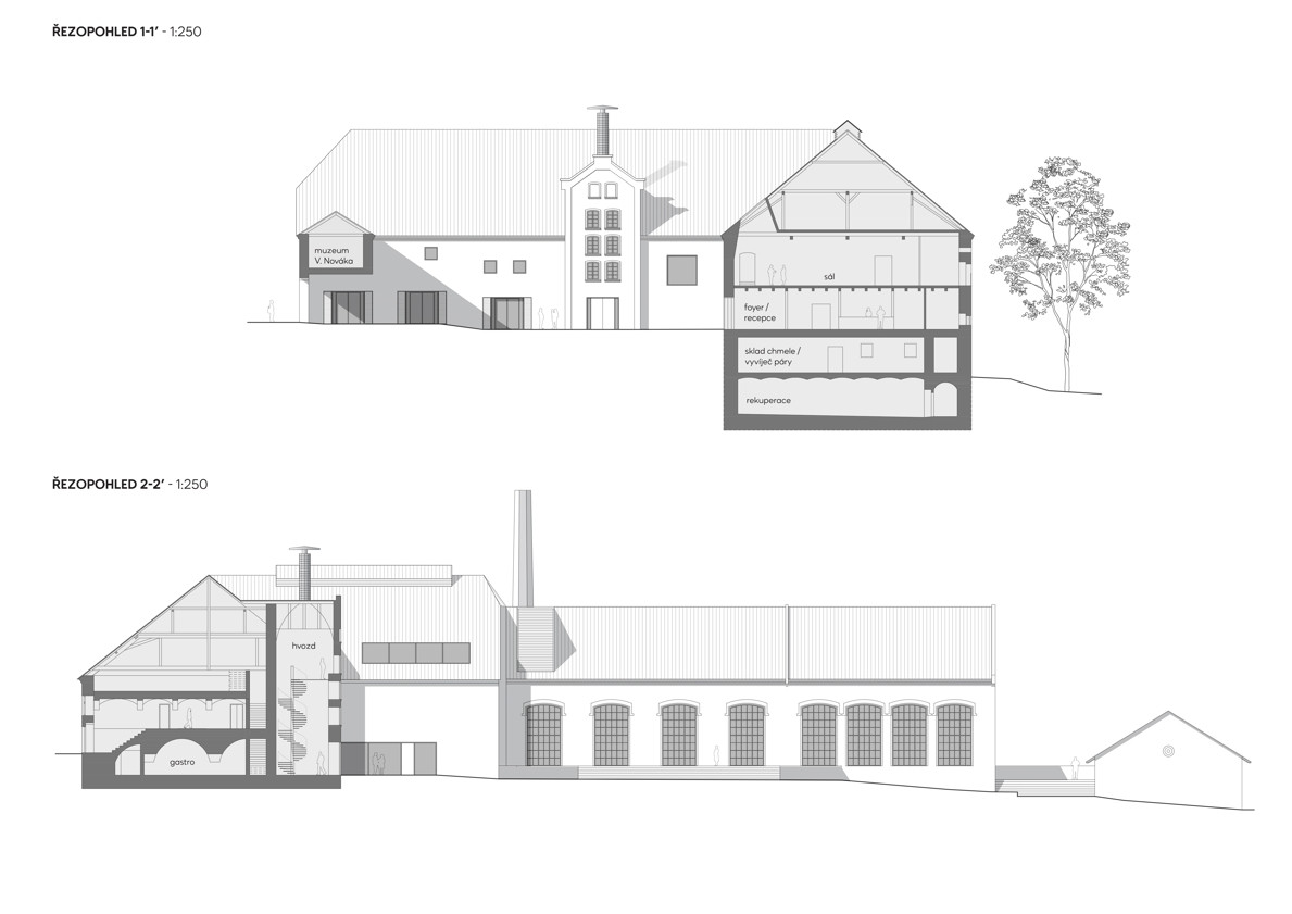 Klíčové provozy pivovaru umisťujeme v rámci stavby tak, aby byly otevřeny do veřejných prostor a zatraktivnily tak celé nejbližší okolí. Pivnici směrujeme do náměstí a novými okny propojujeme s pivovarským dvorem. Ve varně, po obnově původního velkorysého prosklení, vzniká atraktivní průhled z náměstí skrz pivovarský dvůr až do zámeckého parku. Veškerá provozní a technická zázemí jsou skrytá v prostorách sklepů a podkrovích.