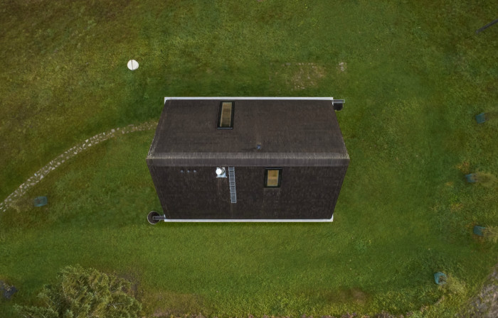 Okolní nenarušená krajina kolem domu protéká takřka bez povšimnutí. Beton zešedne, poroste mechem, modřínové dřevo stárnutím získá šedostříbrnou patinu, přístupová pěšina z pískovcových kamenů se bude ztrácet v luční trávě.