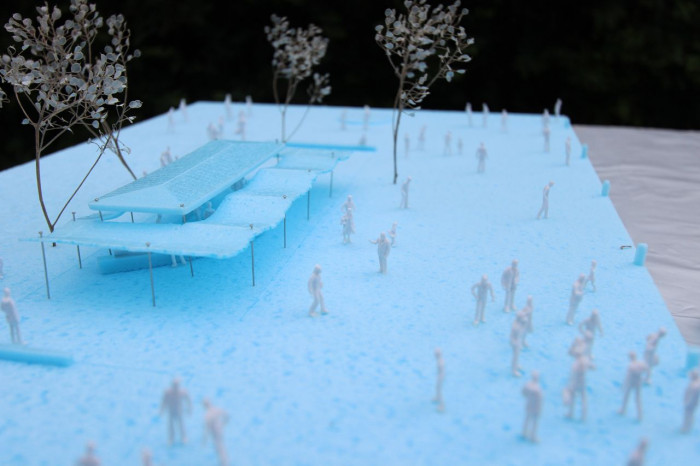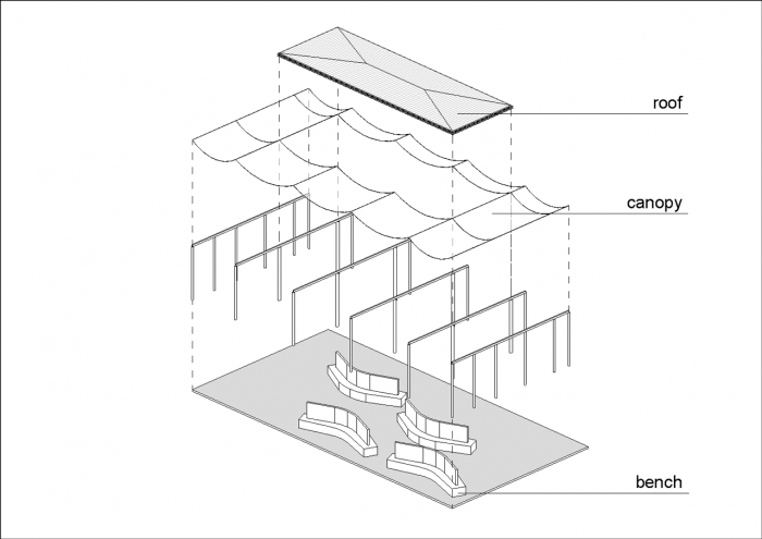 Maketa celého nábřeží, vyrobená v předchozích dnech, nám usnadňuje hledání místa pro umístění stavby, ale nakonec znovu vyrážíme přímo na místo prověřit naše úvahy. Od penzionu je to čtvrthodina svižné chůze po prašných ulicích mezi přízemními domky stojícími těsně jeden vedle druhého a lišících se pouze barvou své fasády. Všechny jsou obrostlé vinnou révou a jejich malé dvorky nám zůstávají ukryté za vysokými ploty z plechu.