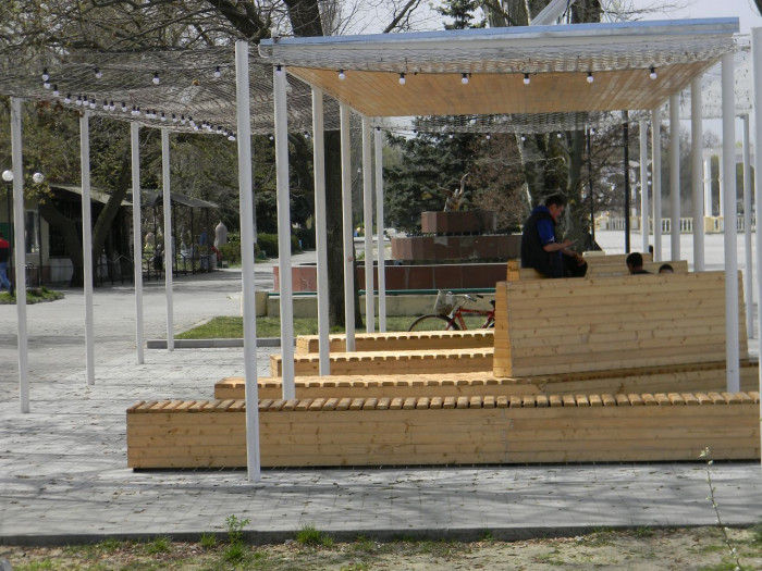 Malá stavba na nábřeží Dněpru v ukrajinském městě Hola Prystan v sobě spojuje více funkcí. Je zastávkou pro cestující veřejnou lodní dopravou. Je jediným krytým místem pro setkávání obyvatel města na nejreprezentativnějším veřejném prostoru města. V neposlední řadě je i místem elektronické komunikace díky možnosti bezplatného připojení k internetu.