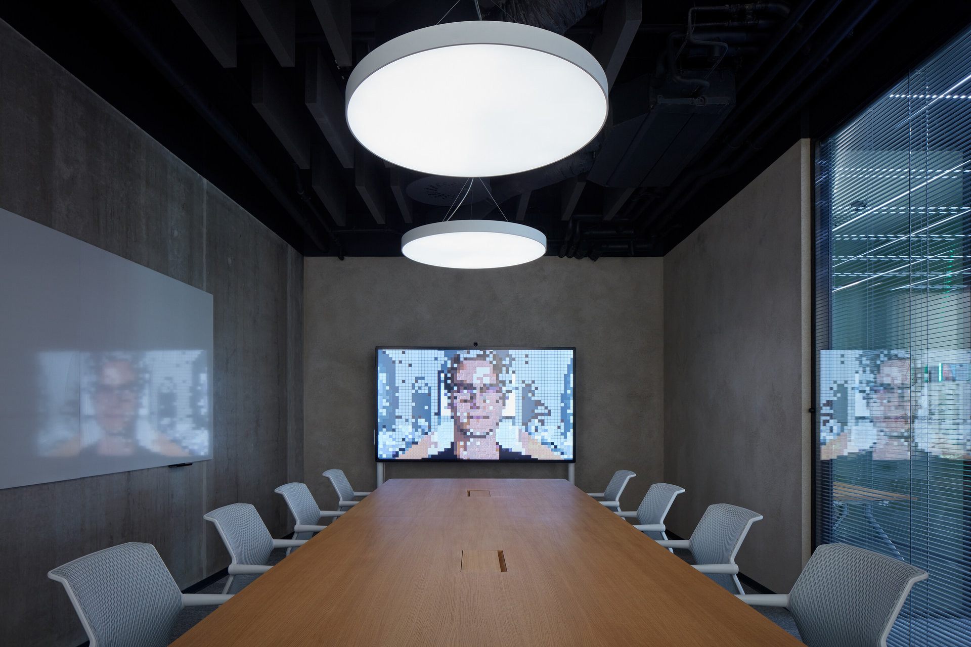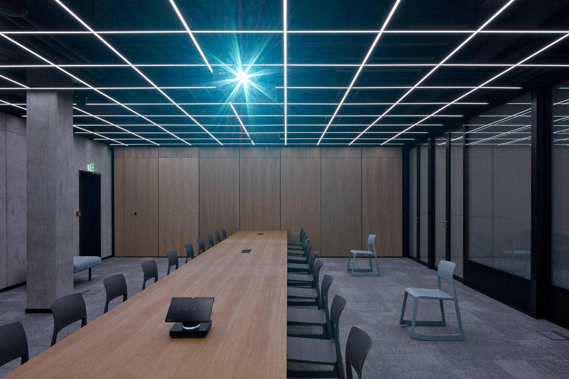 Jediné konkrétní (uzavřené) místnosti jsou jednačky a focus roomy s kapacitou od dvou do šestnácti osob.