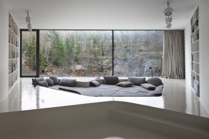 Prototyp rodinného domu je realizován v bývalém žulovém lomu v Posázaví.