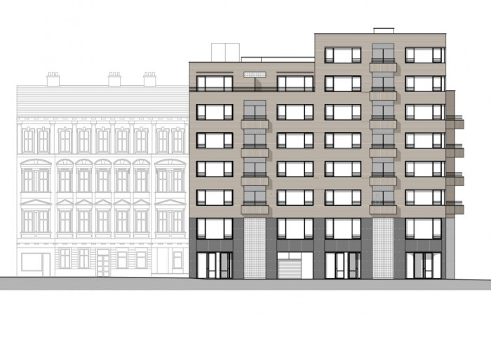 Polyfunkční objekt je dostavbou proluky ve stávající zástavbě činžovních domů. Dům respektuje uliční čáru ulice Bratislavská. Ve styku se štítem sousedního činžovního domu navržená hmota ustupuje a navazuje na stávající šikmou sedlovou střechu. Západní fasáda domu respektuje návrhové řešení Územního plánu města Brna – uliční čáru nové městské třídy. Dům je navržen jako osmi patrový s jedním podzemním podlažím. Má dvě komunikační jádra a dvorní pavlač. Svojí formou se dům snaží komunikovat na stávající zástavbu kvalitních činžovních domů v historizujícím stylu.
