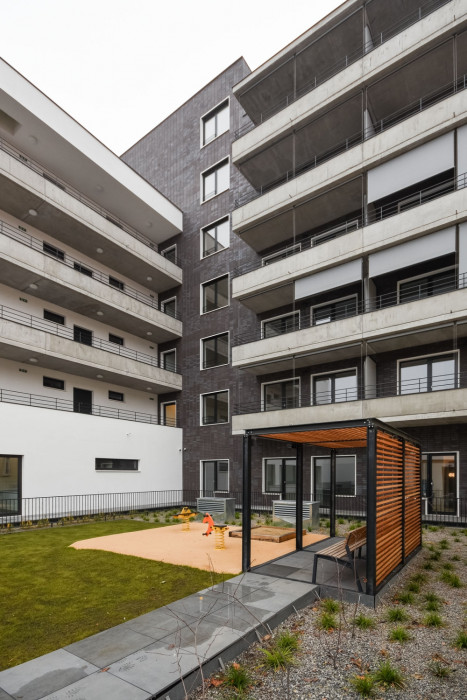 Objekt obsahuje komerčními prostory v 1.NP, administrativou v 2.NP. a byty ve 3.-8. NP. V 1PP jsou umístěny garáže a technické místnosti. Z ulice Bratislavské je situován vjezd do garáží, ve kterých je umístěn auto-výtah, který obsluhuje parkovací stání v 1NP a 1PP. Ve 2. NP se nachází administrativní plochy s adekvátním sociálním, hygienickým a skladovým zázemím. Ve 3.-8 NP jsou bytové plochy. Kategorie bytů jsou 2+kk, 2+1, 3+kk. Všechny byty mají buď balkón, lodžii nebo terasu.