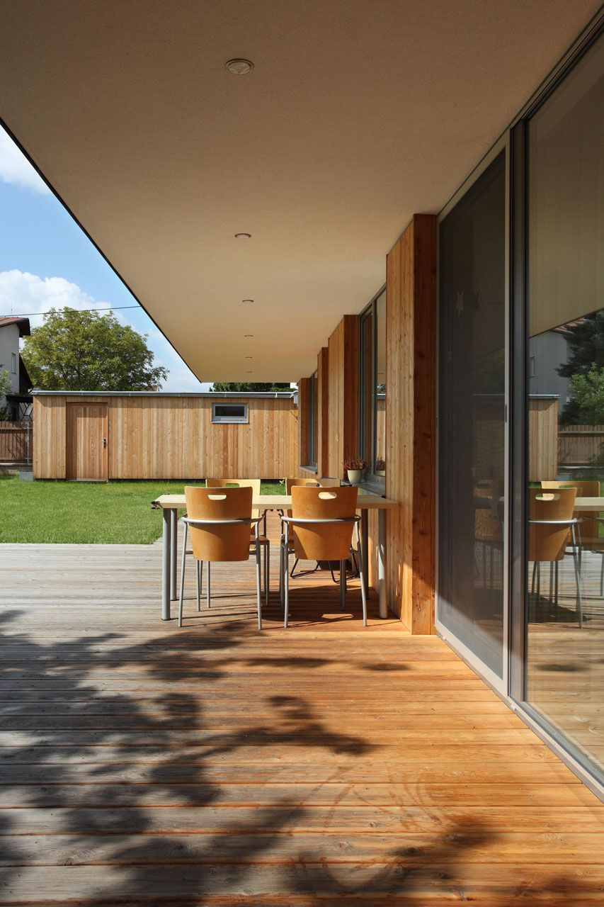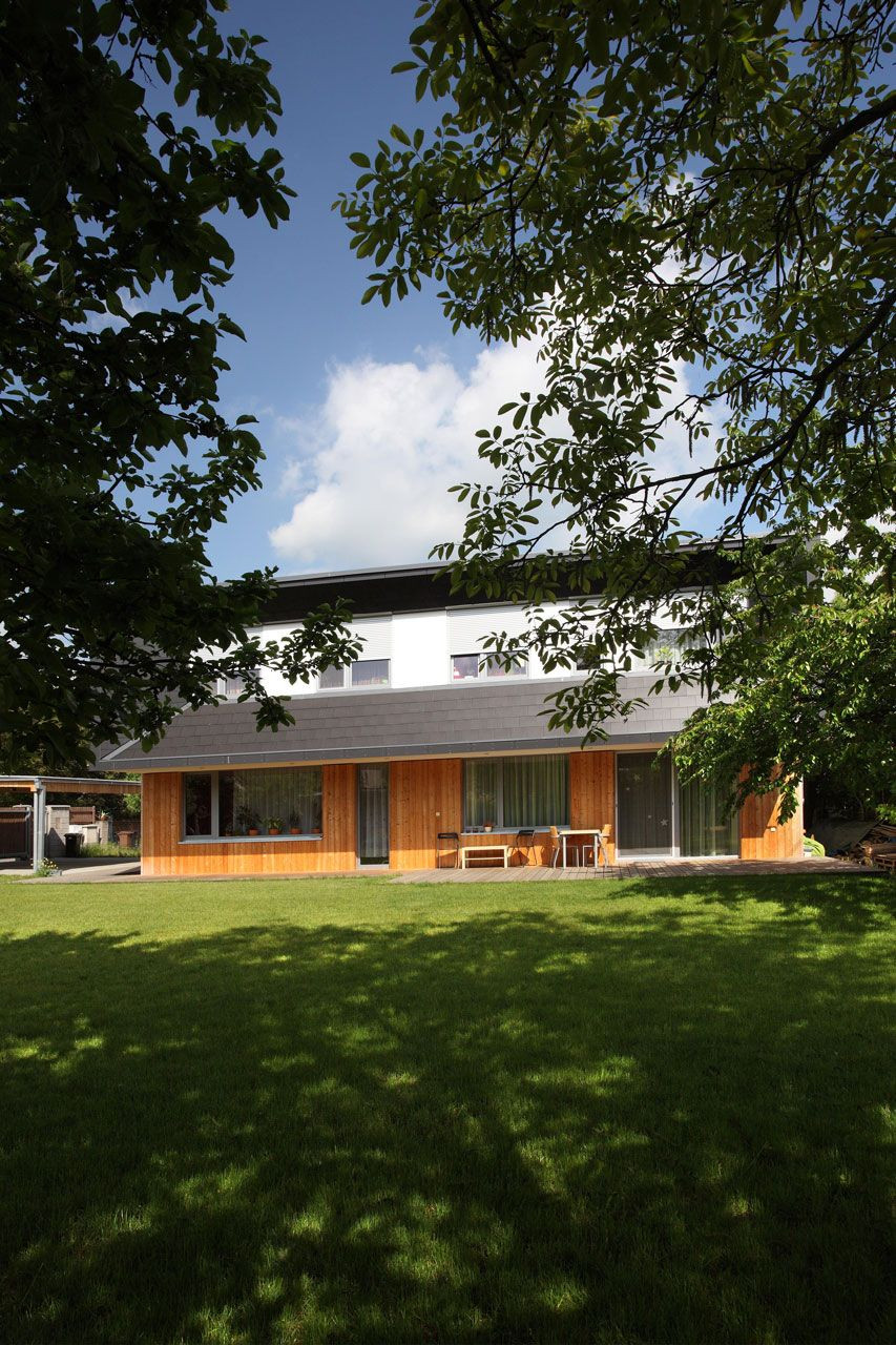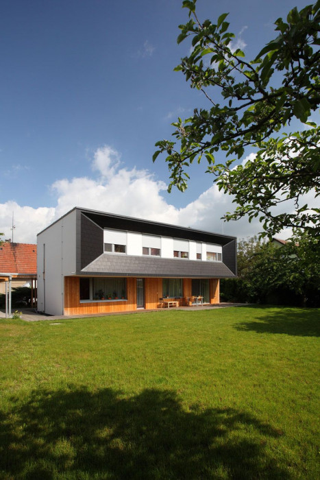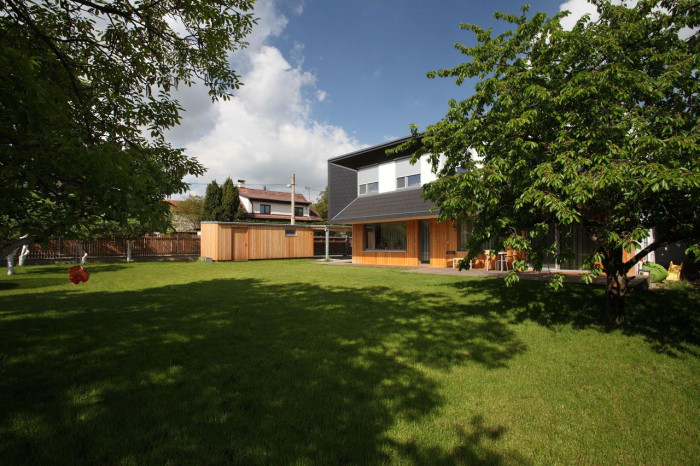 Z důvodu zachování intimity interiéru a současně z respektu k soukromí sousedů navrhli autoři ze studia Prodesi dům ze třech stran prakticky uzavřený. Jihovýchodní stranou dům naopak otevírá všechny své obytné místnosti do zahrady. Dům se tak zcela přirozeně stává součástí zahrady, která volně přechází do domu skrze venkovní obytný prostor pod vykonzolovaným patrem.