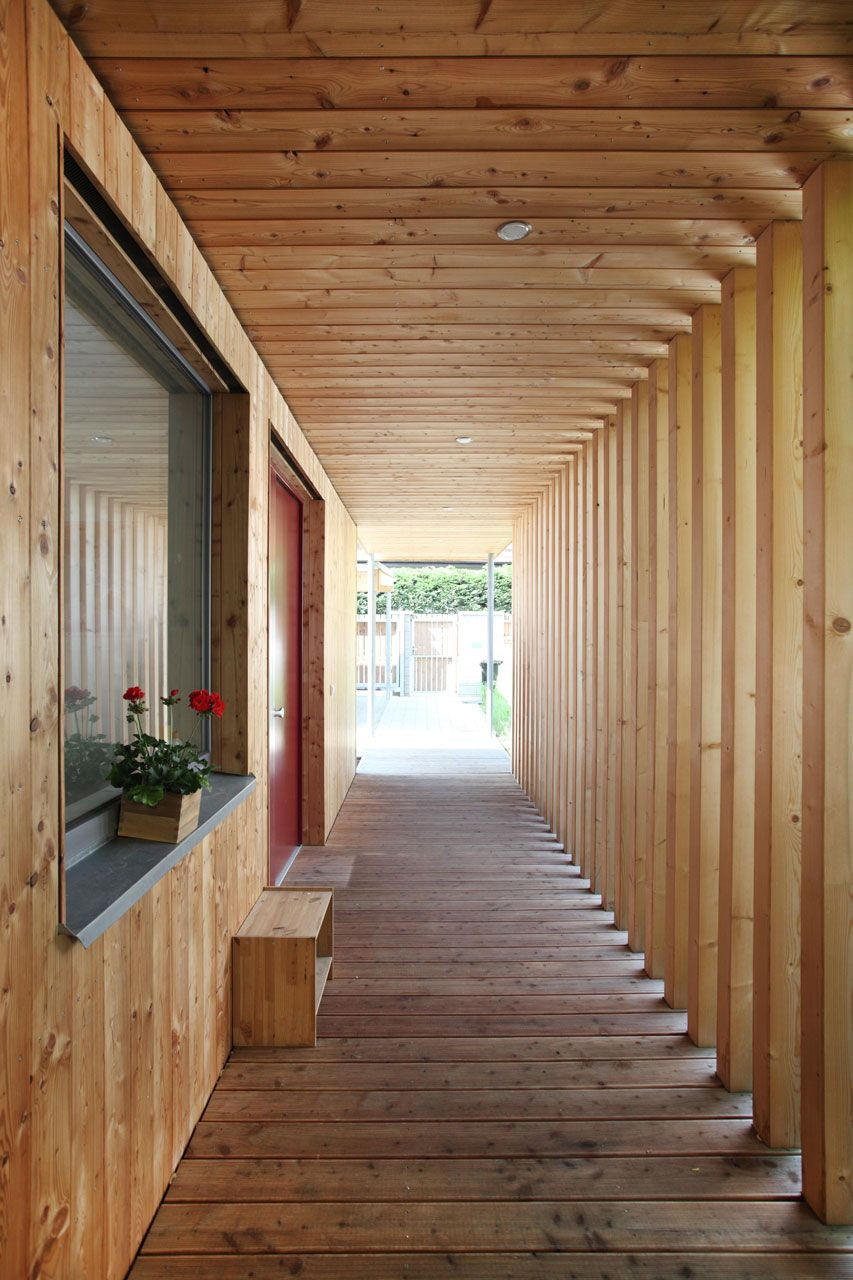 Dispozice domu vznikala jako příběh, který se utvářel na základě každodenního života stavebníka. Do domu se od ulice vstupuje po kryté „lávce“, na kterou dohlíží okno z kuchyně. Obyvatelé tak mohou jasně kontrolovat, kdo jde zrovna na návštěvu. Soukromí zahrady je chráněno zastřešeným stáním pro dvě auta a navazujícím dřevěným skladem.