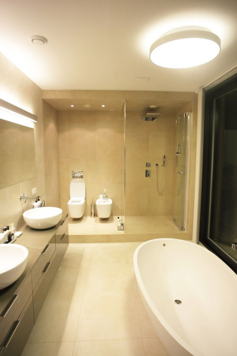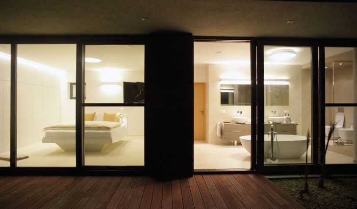 Zúžená škála použitých materiálů (dlažba z polské žuly, terasa z prken dřeva bangkirai, stěrková probarvená omítka, titanzinkový předzvětralý plech střechy) odpovídá určitému archetypu venkovské prostoty, přitom podtrhuje samotnou architekturu.